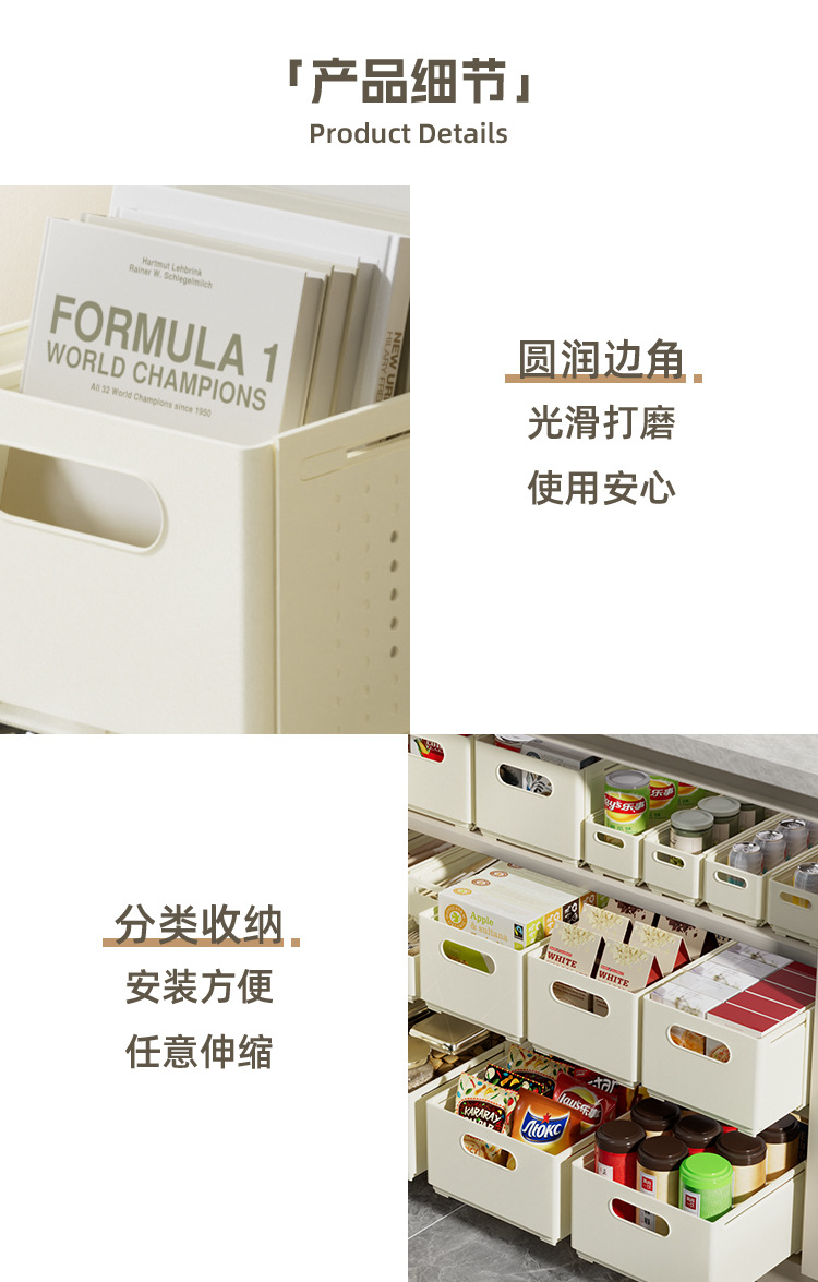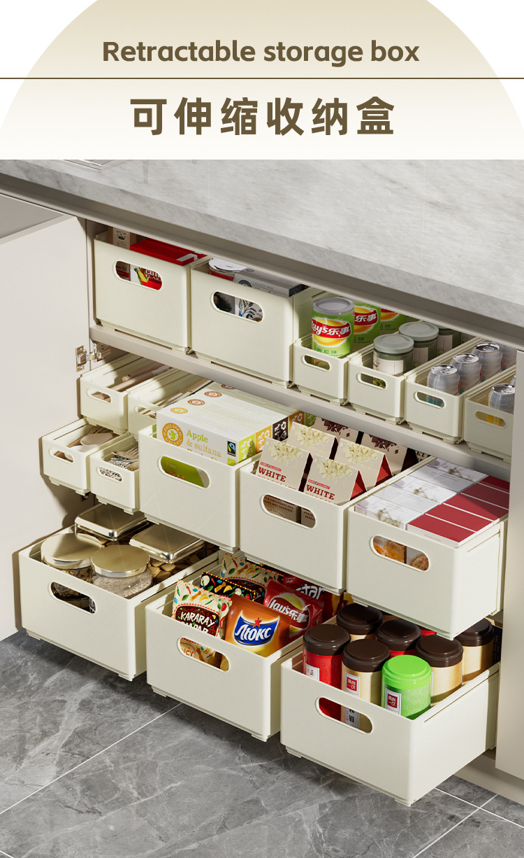 Gabinetes Cesta de cocina retráctil Caja de almacenamiento de bocadillos Caja de acabado con grietas Fregadero debajo del cajón Caja de almacenamiento en ángulo recto