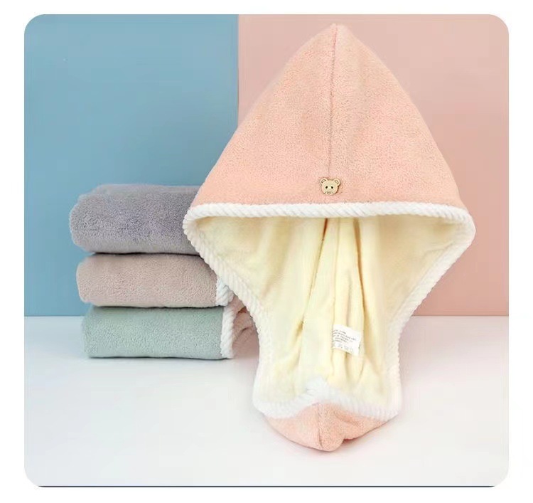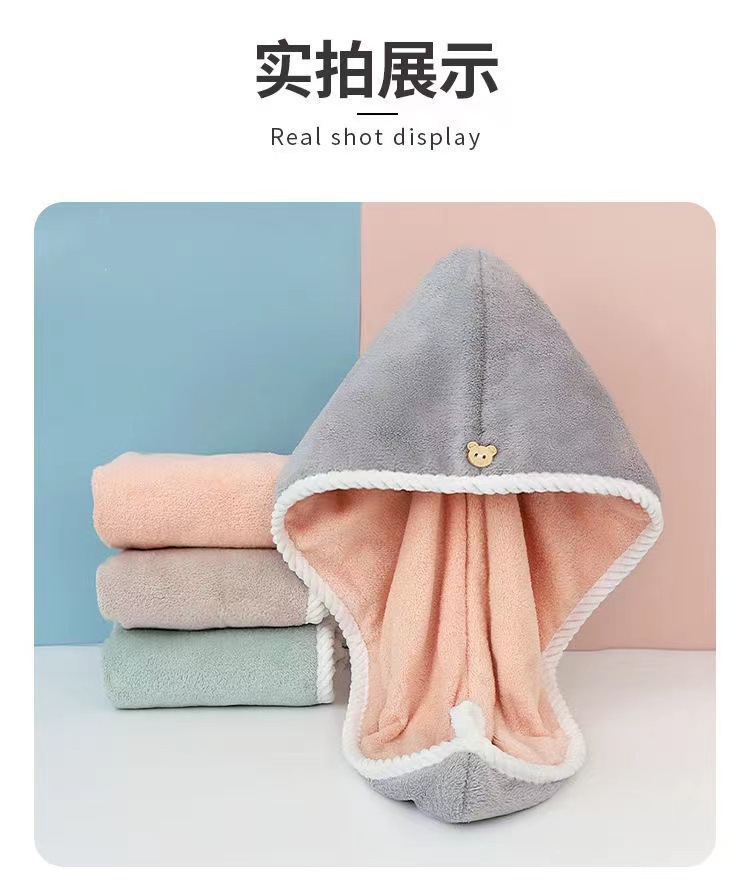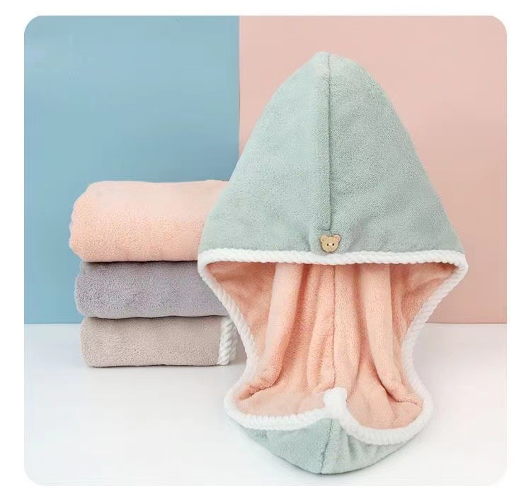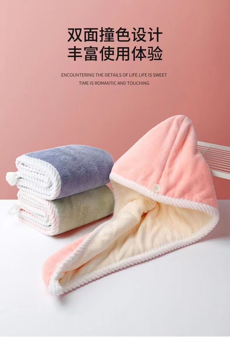 Gorra de pelo seco grueso de dos colores de doble capa, lana de coral, súper absorbente, suave y de secado rápido, gorro de ducha antibacteriano, toalla, fábrica de pañuelos para la cabeza