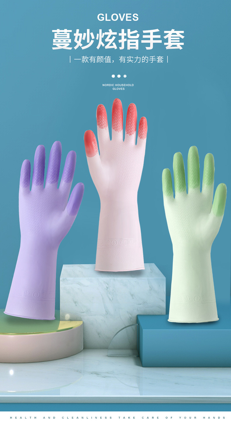 Guantes de limpieza del hogar lavaplatos y lavado de vegetales duradera impermeable lavado femenino tazón Limpieza de goma guantes de cuero al por mayor