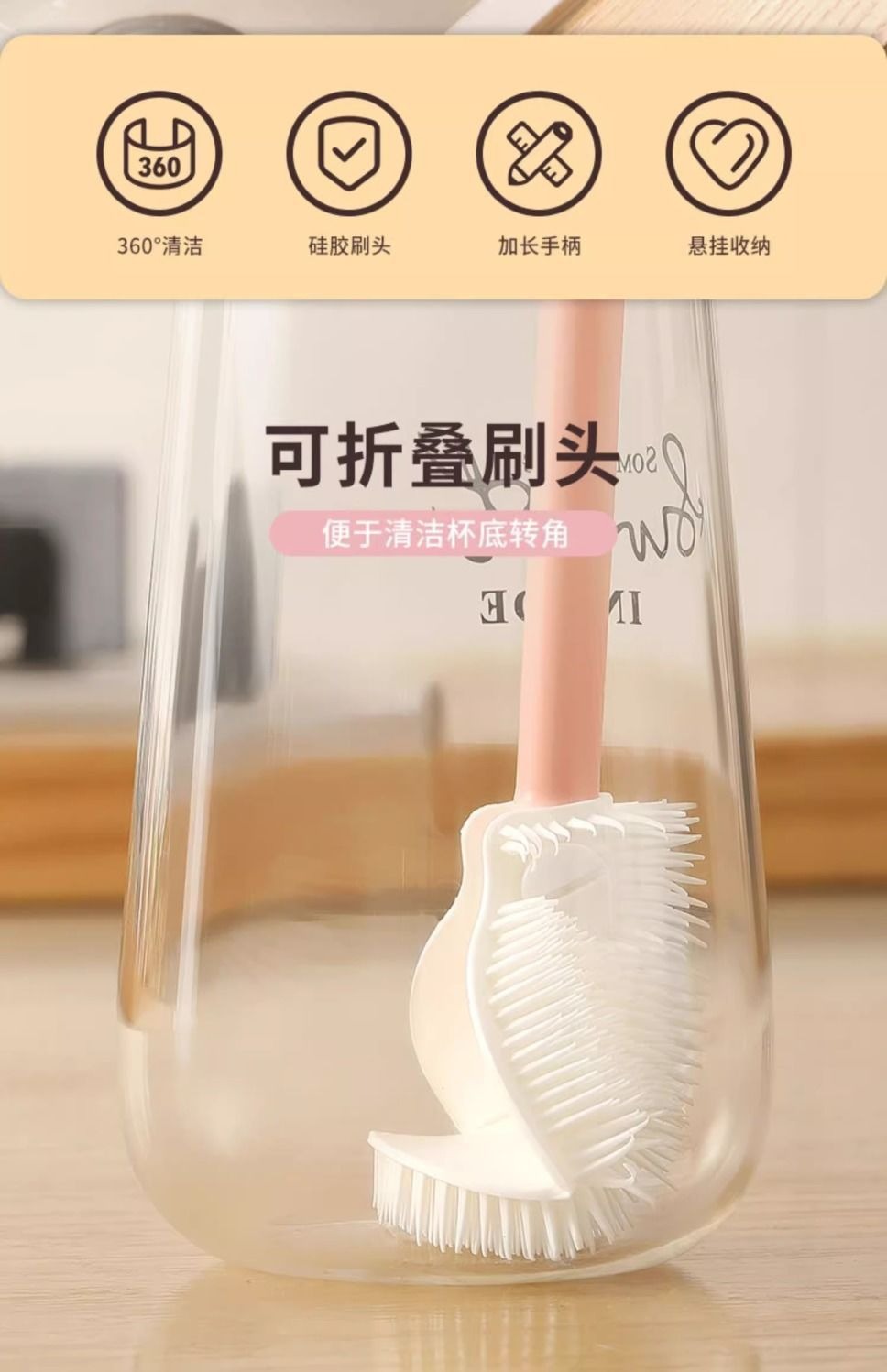Cepillo de limpieza de tazas de agua de 360 grados cepillo de limpieza especial cepillo de hendidura reemplazo de cabeza cepillo de botella de leche para el hogar
