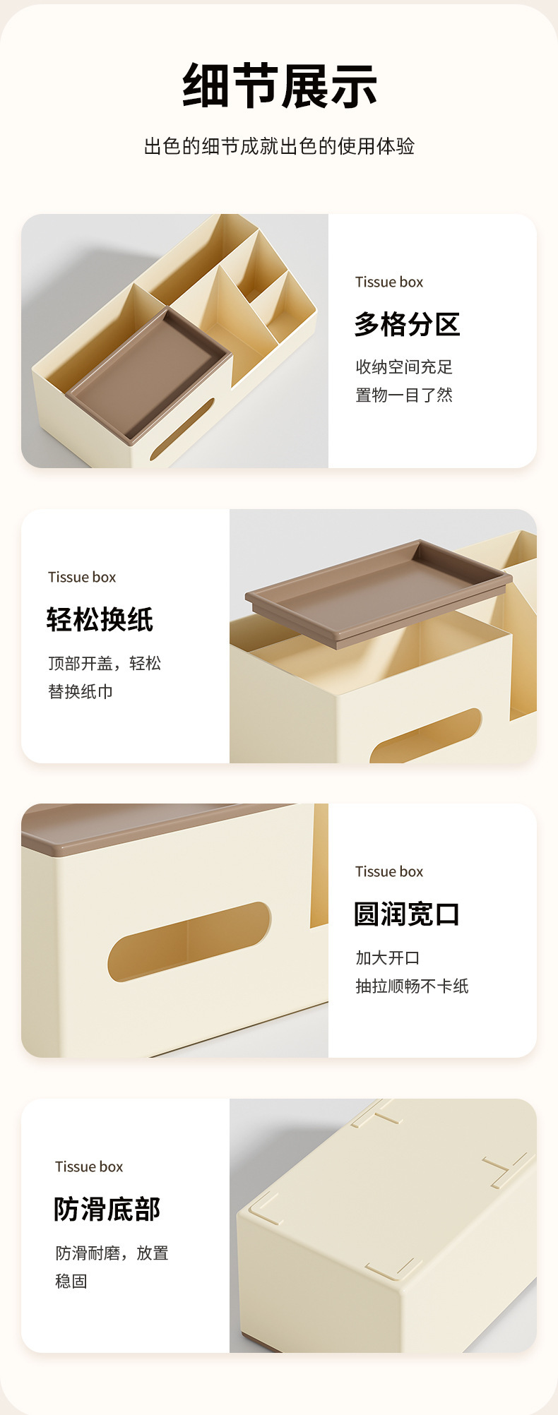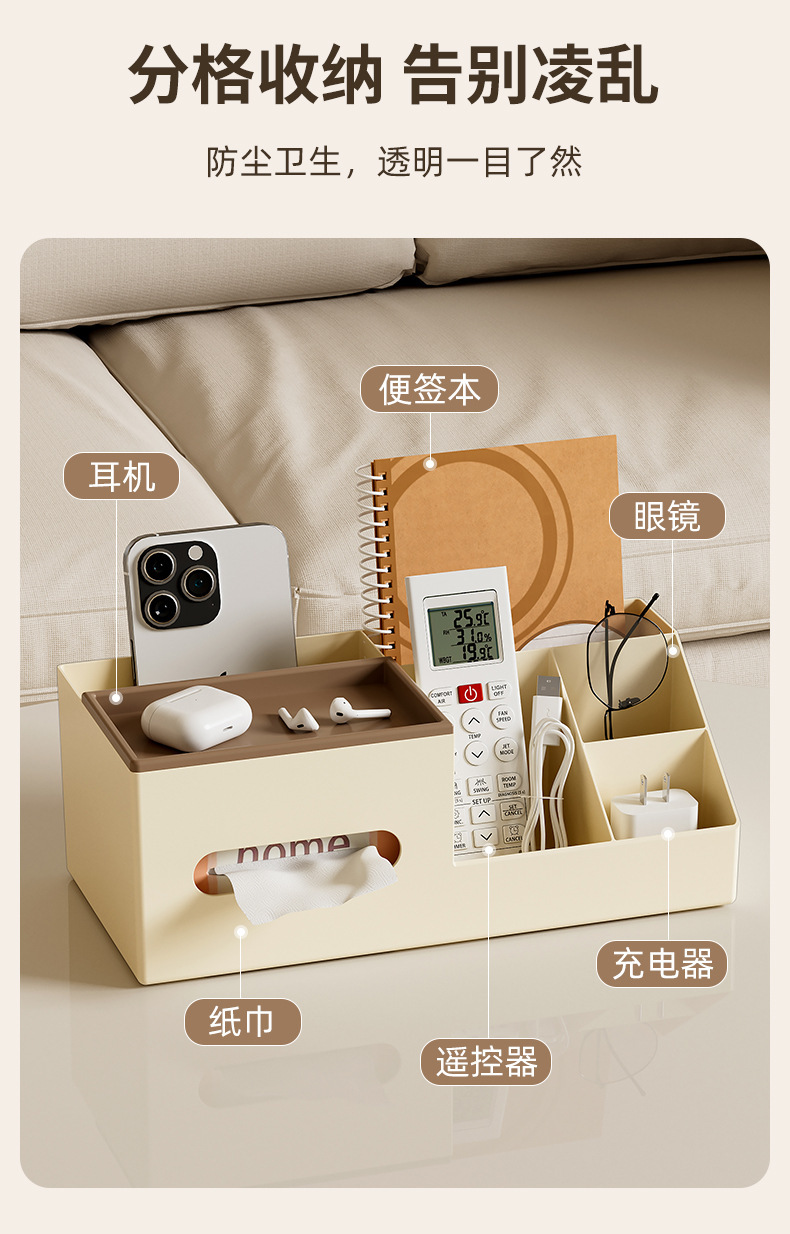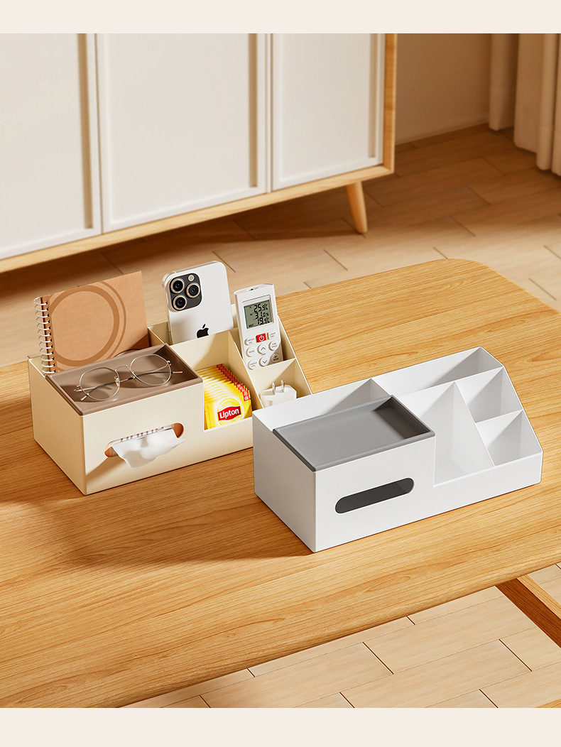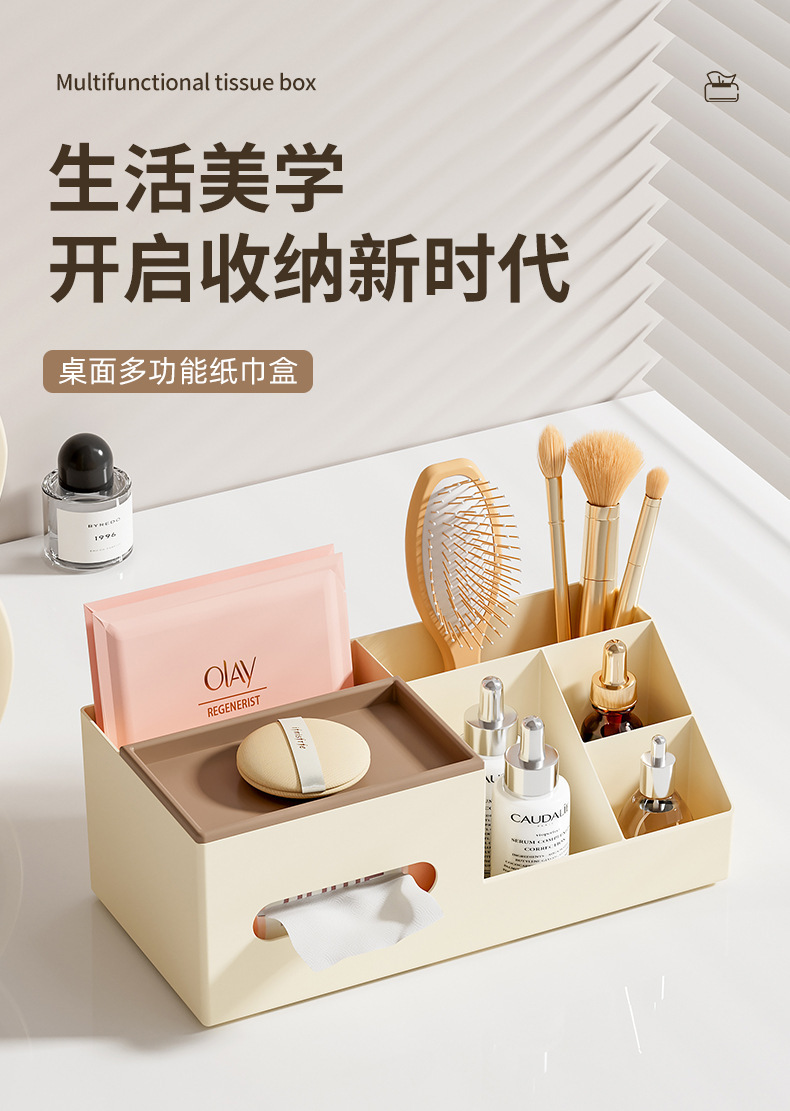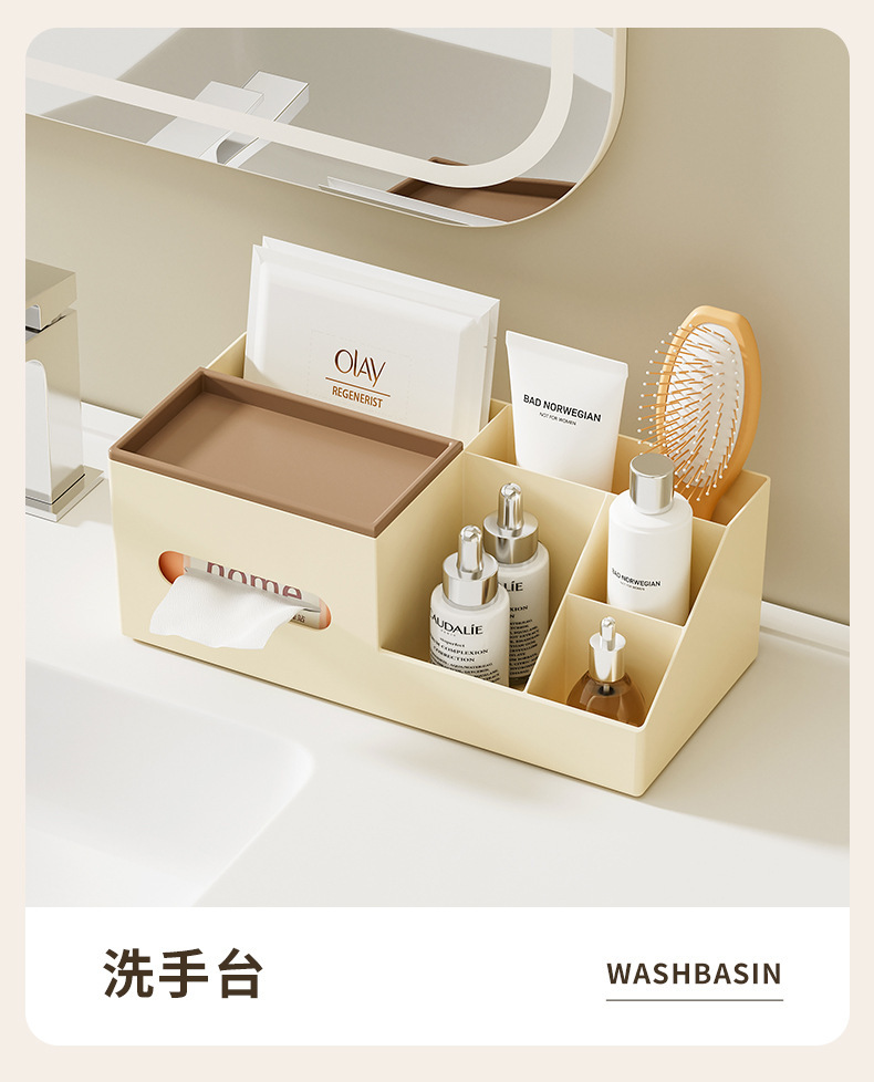 Casa sala de estar dormitorio caja de toallas multifuncional caja de almacenamiento de artículos de color crema caja de acabado de cosméticos