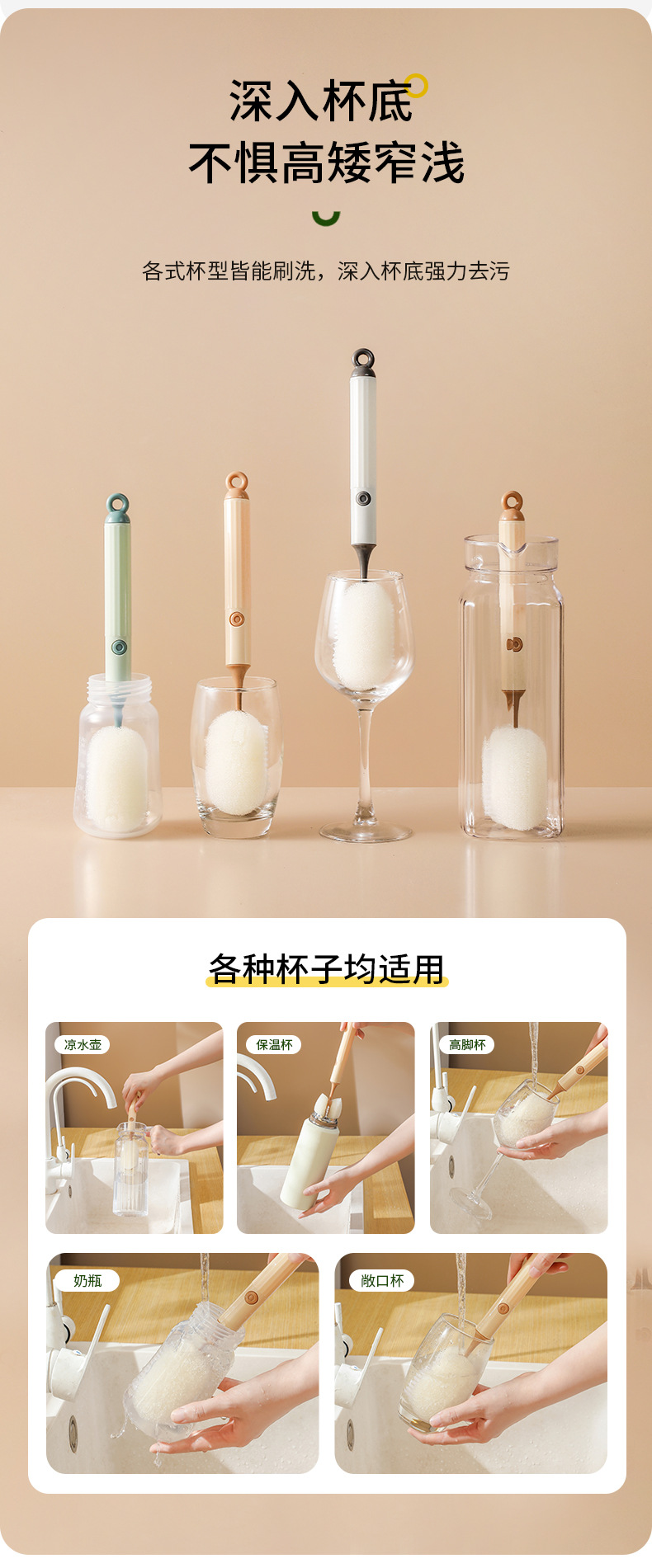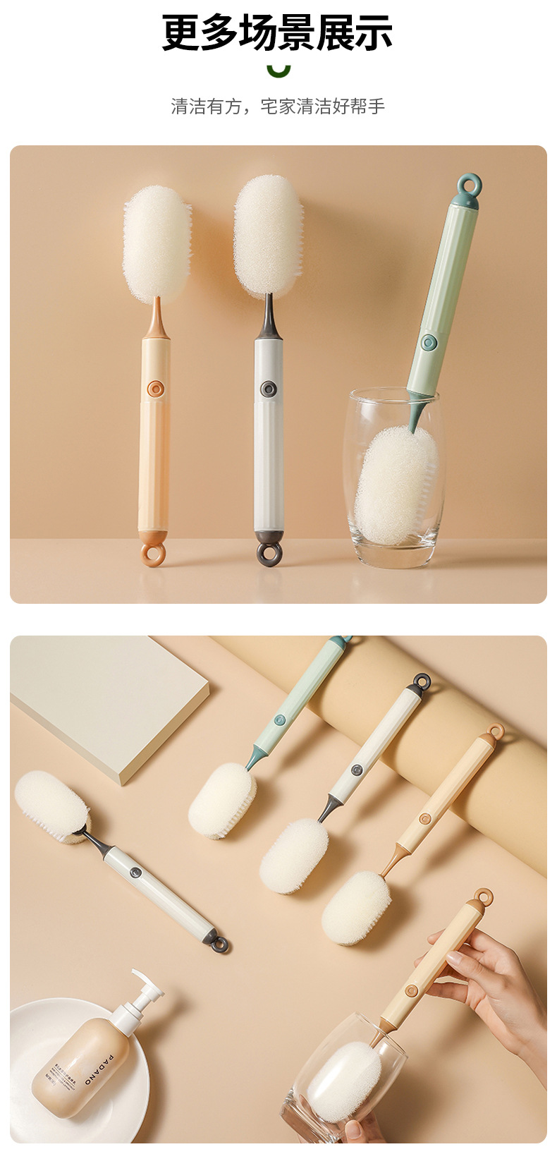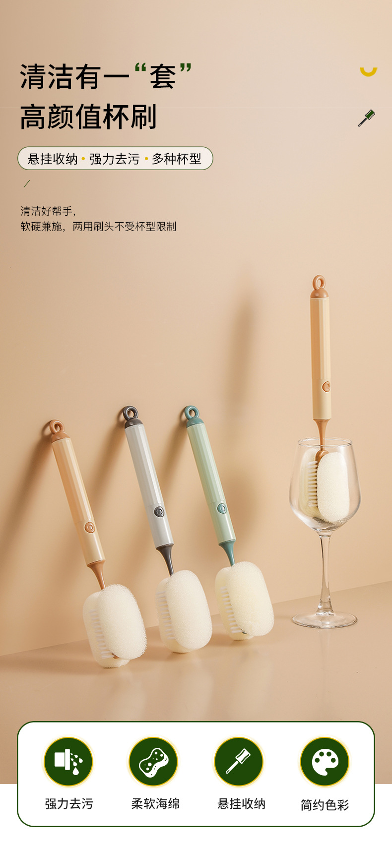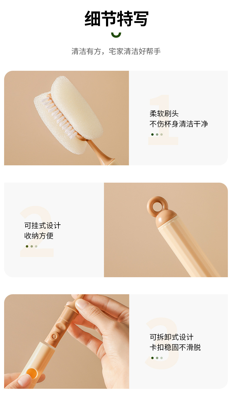 Cepillo de taza de limpieza para el hogar simple de estilo nórdico, almacenamiento de suspensión, manchas de limpieza suaves y duras, cepillo de taza de mango largo al por mayor
