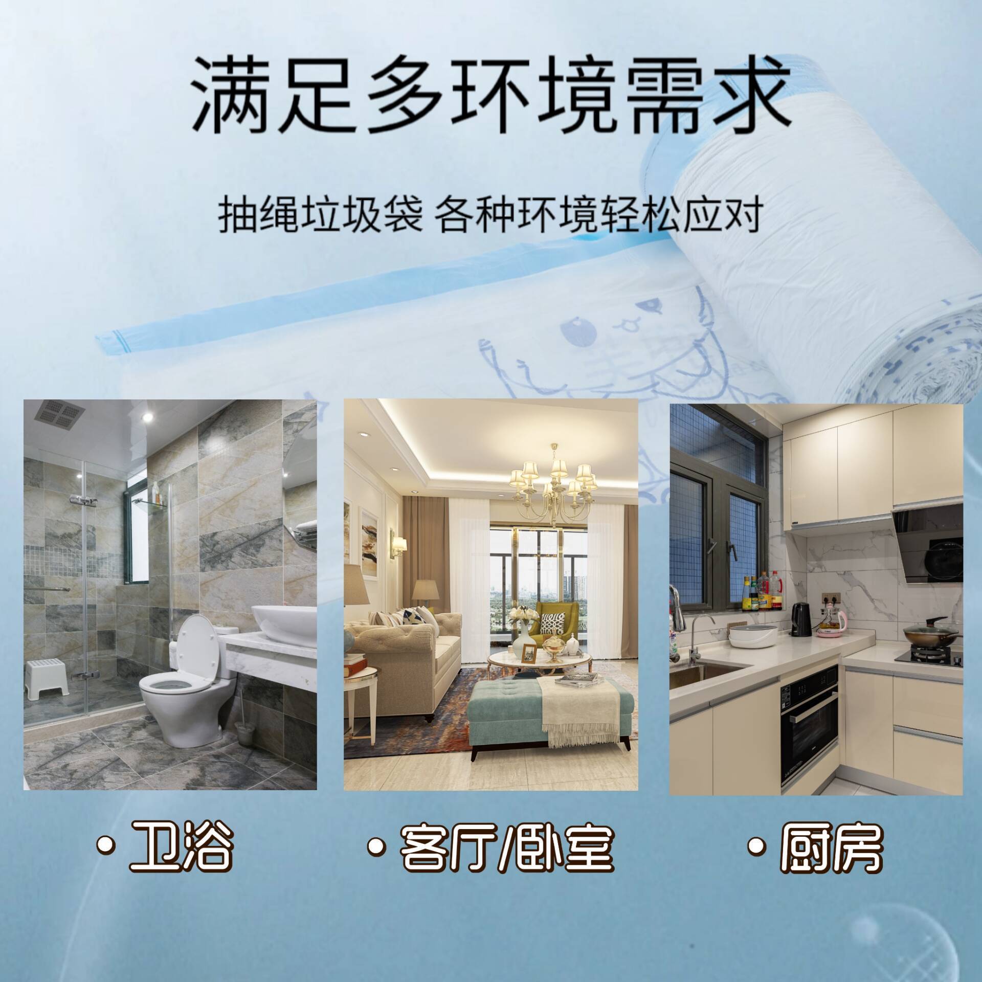 Bolsas de basura impresas con cordón, cierre automático, versión gruesa, 100 unidades/rollo, bolsas de plástico grandes, portátiles.