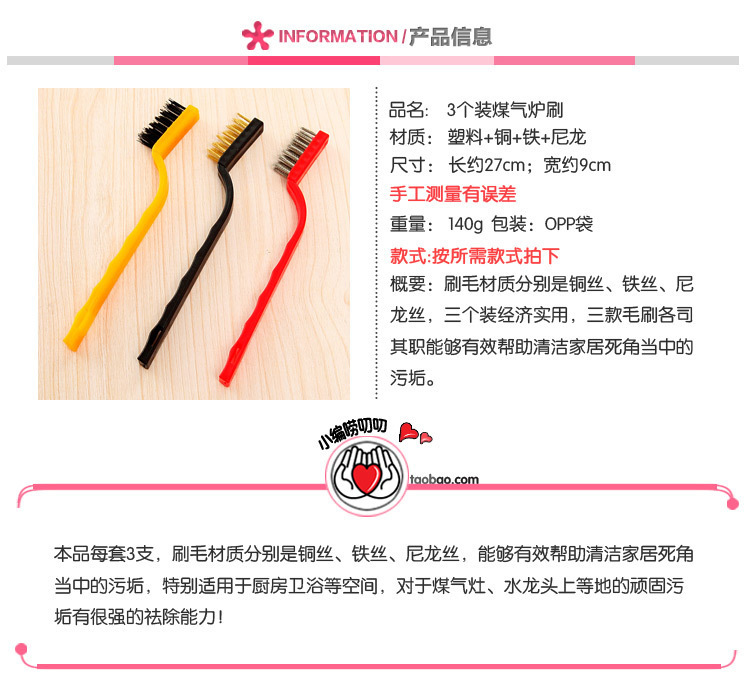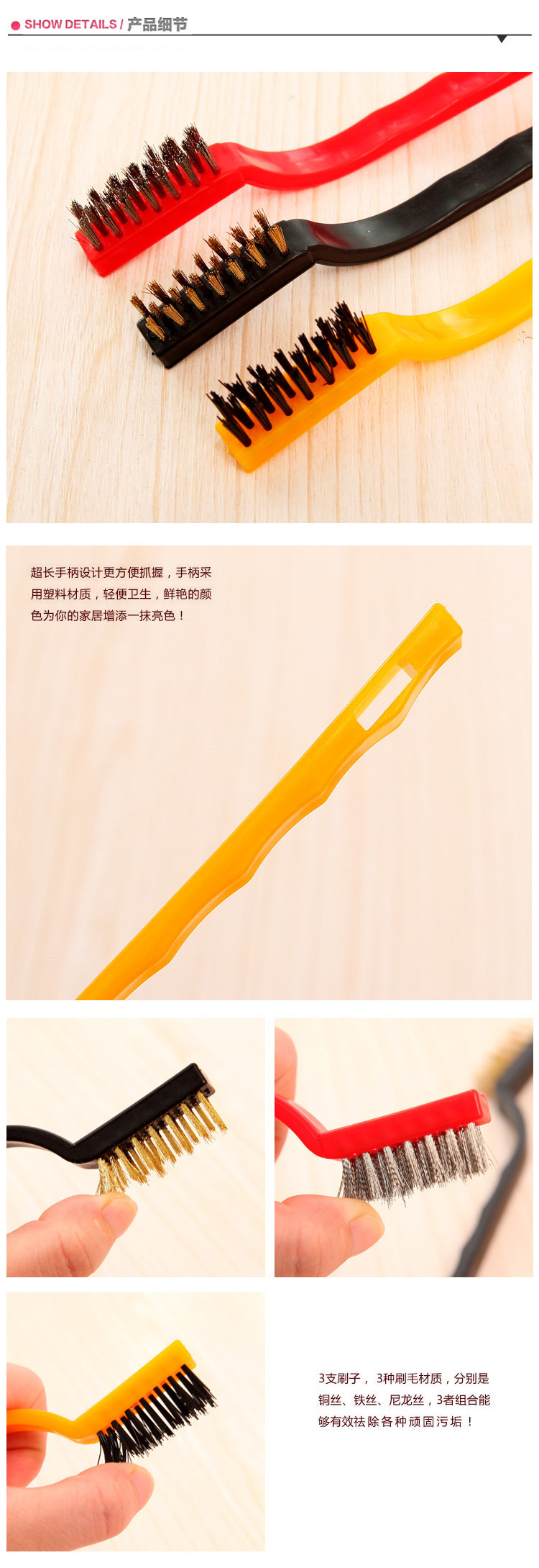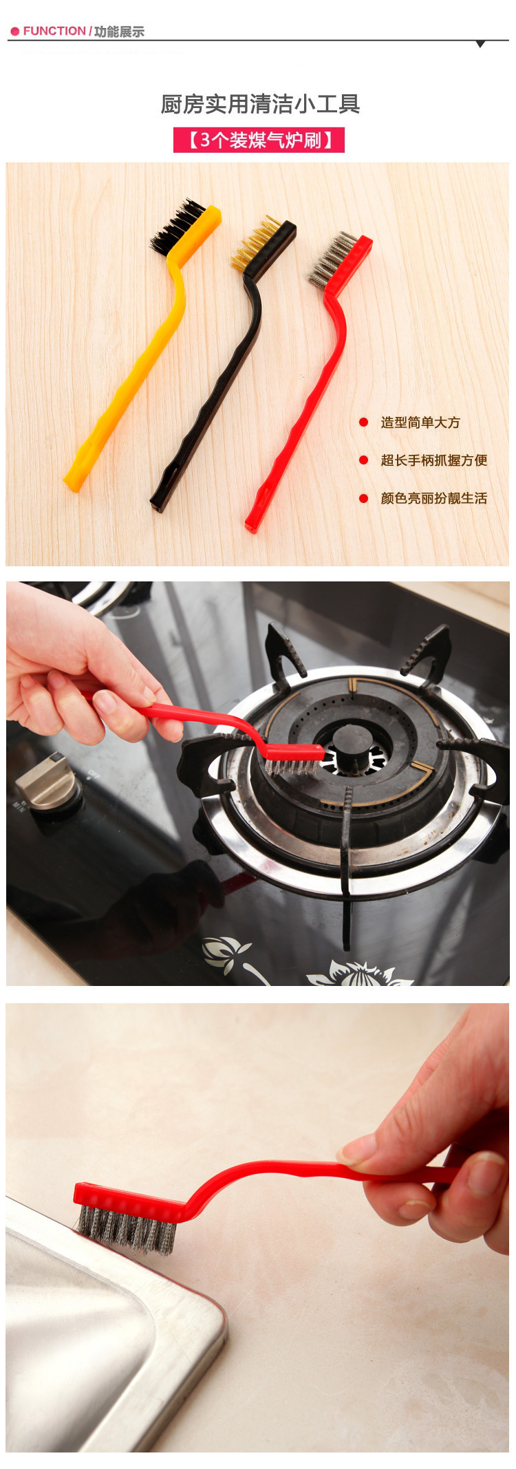 Cepillo de limpieza para estufas de gas, tres piezas, estufa doméstica, herramienta de eliminación de humos, descontaminación de espacios en las esquinas, cepillo de alambre de acero de limpieza