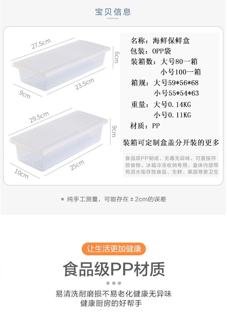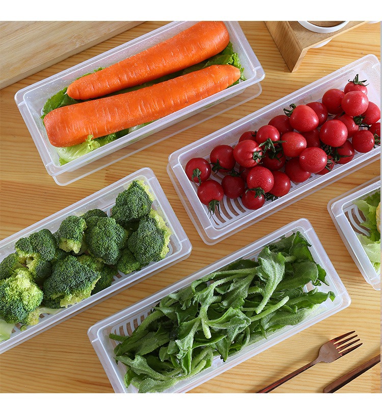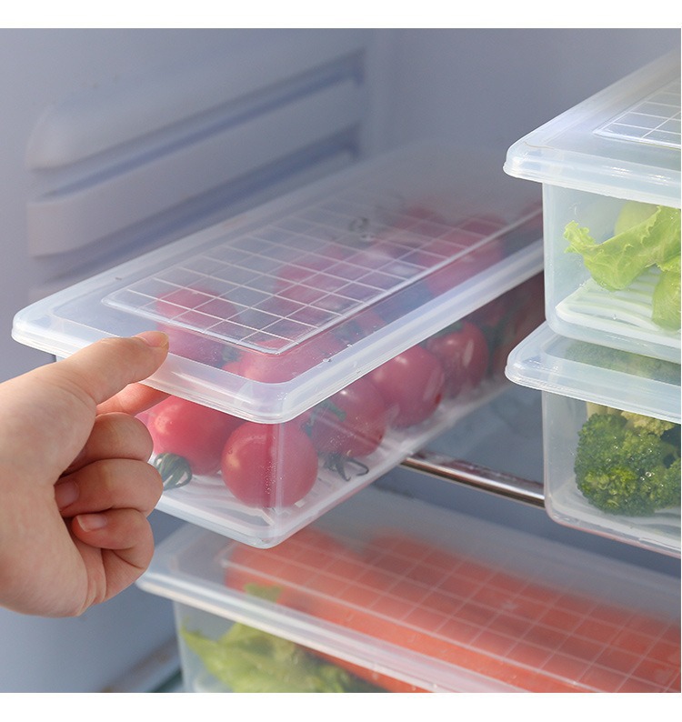 Venta caliente refrigerador de cocina a prueba de humedad cajas de almacenamiento de drenaje de mariscos cajas de almacenamiento selladas con cajas de cojín de drenaje