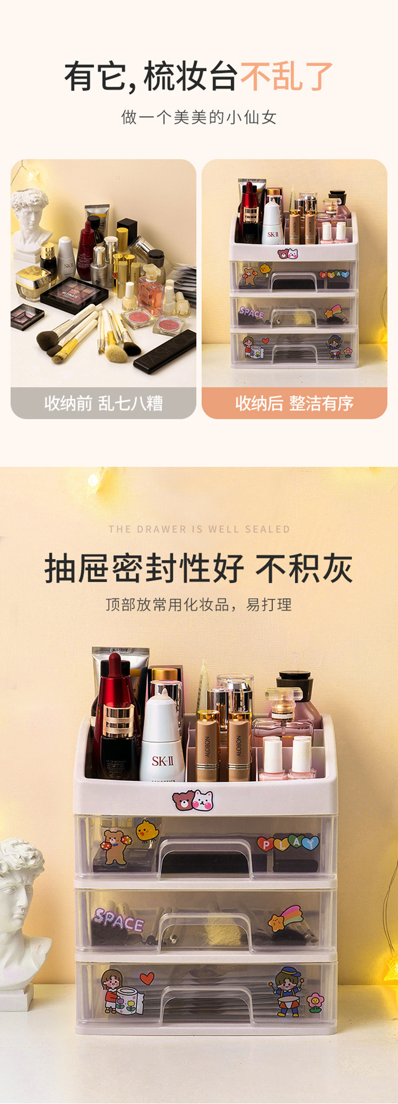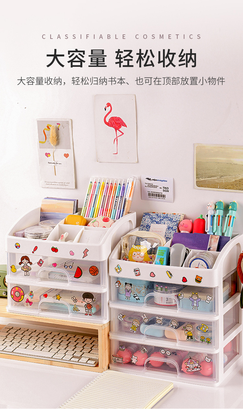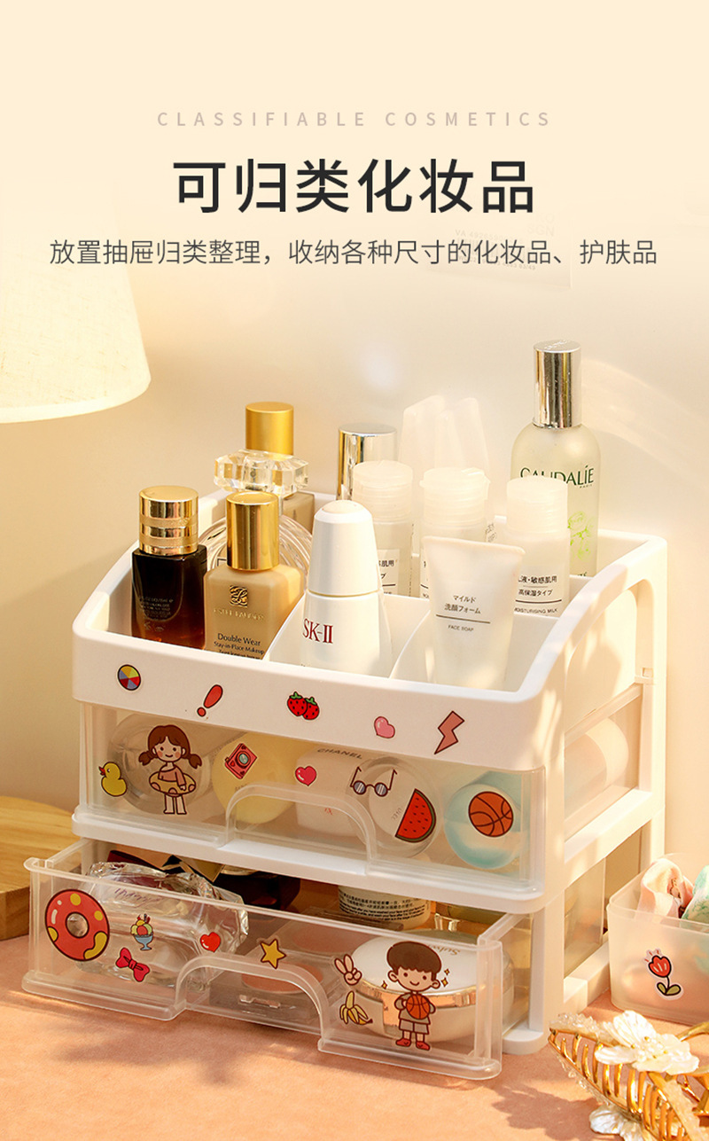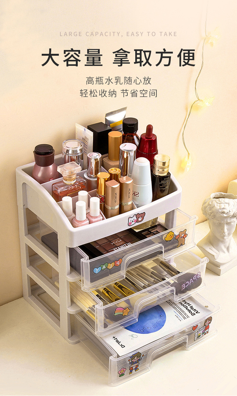 Gran caja de almacenamiento de cosméticos estante de almacenamiento de escritorio cajón papelería lápiz labial cuidado de la piel tocador caja de organización