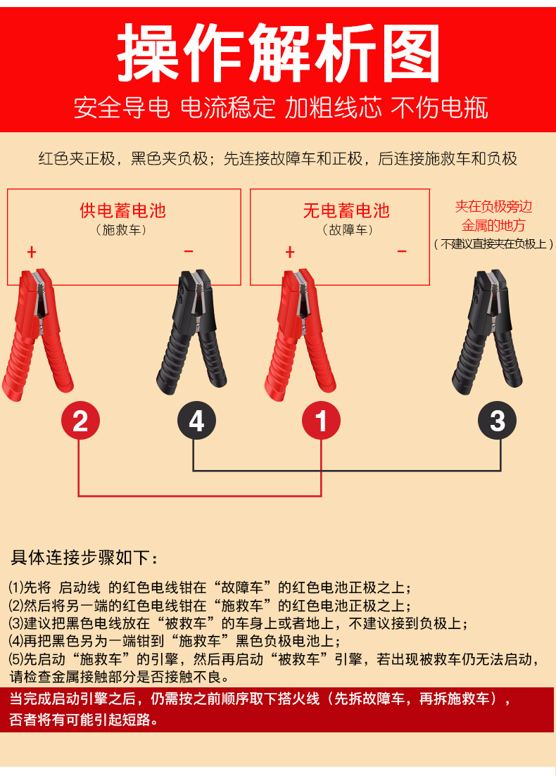 Línea de fuego del coche línea de batería Cruz Jianglong clip de la batería cable clip de cocodrilo alambre de cobre puro emergencia Universal