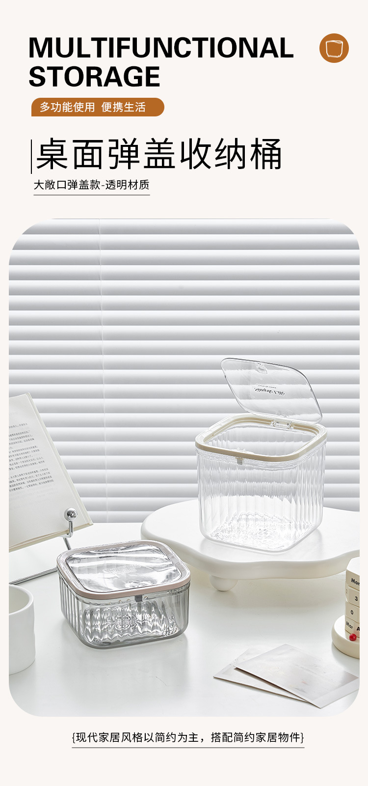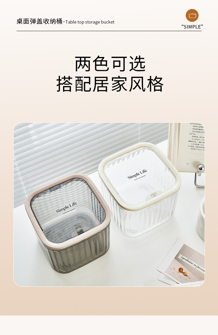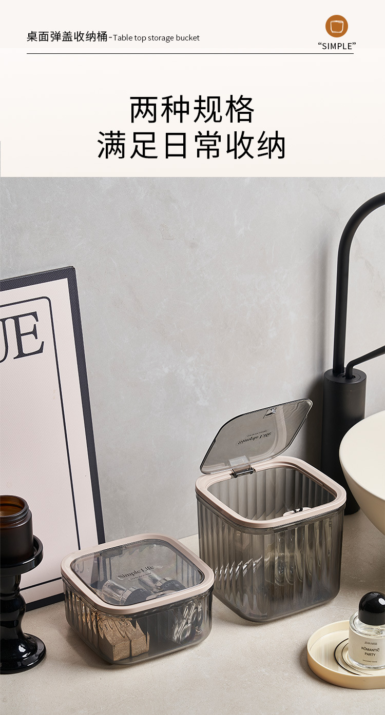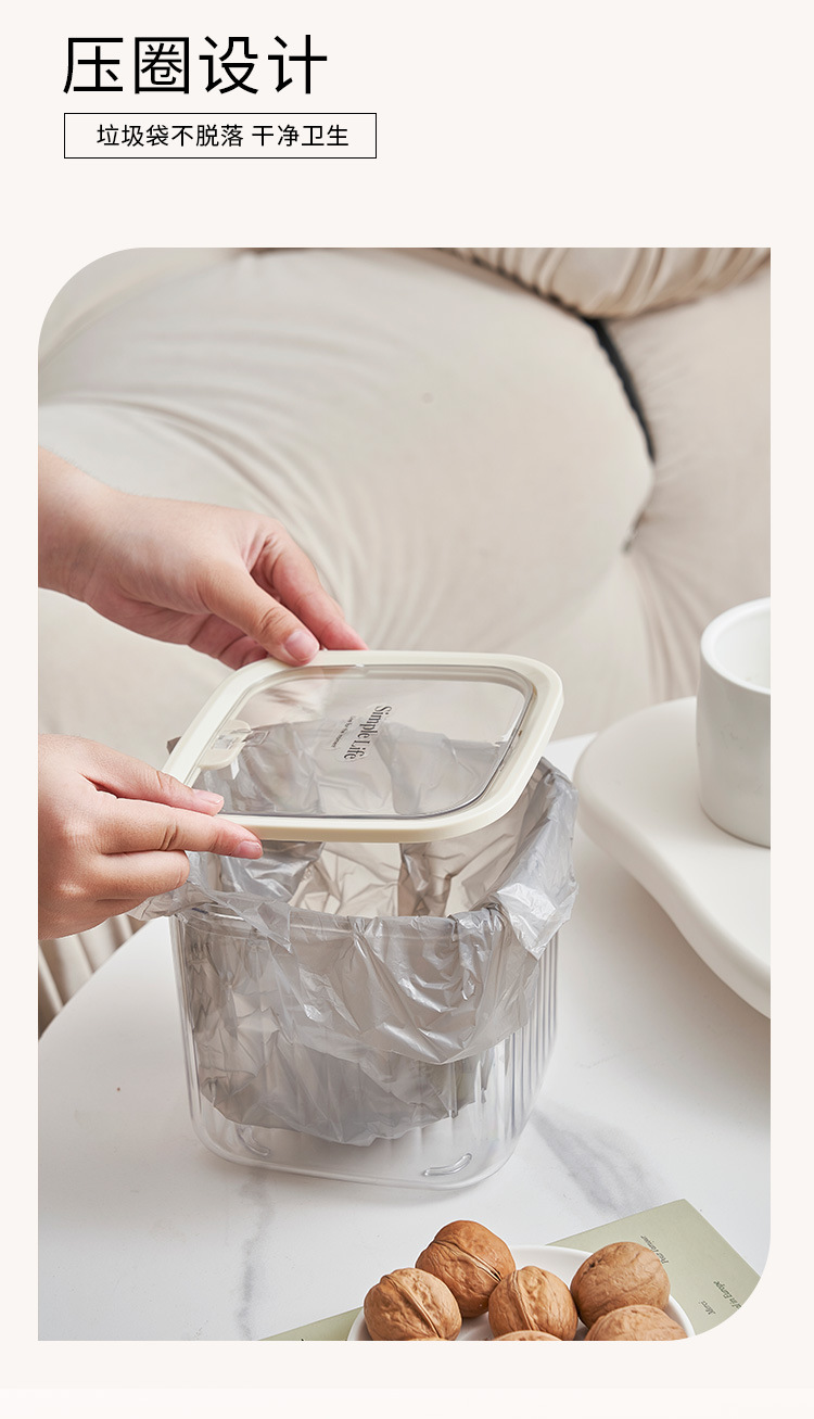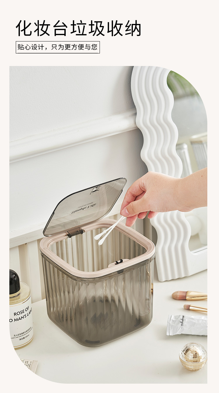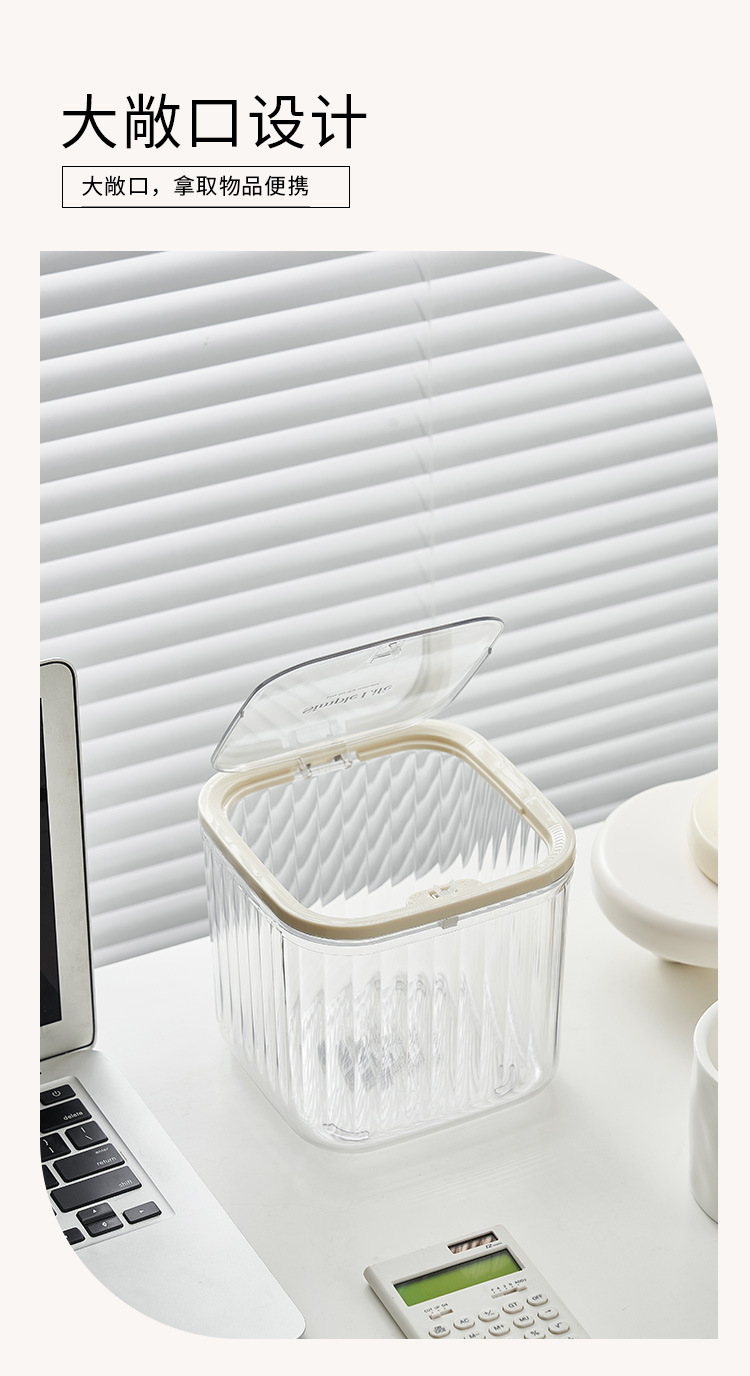 Basurero de escritorio plástico transparente basurero de cocina doméstica con cubierta ins viento de alto valor de presión de escritorio creativo