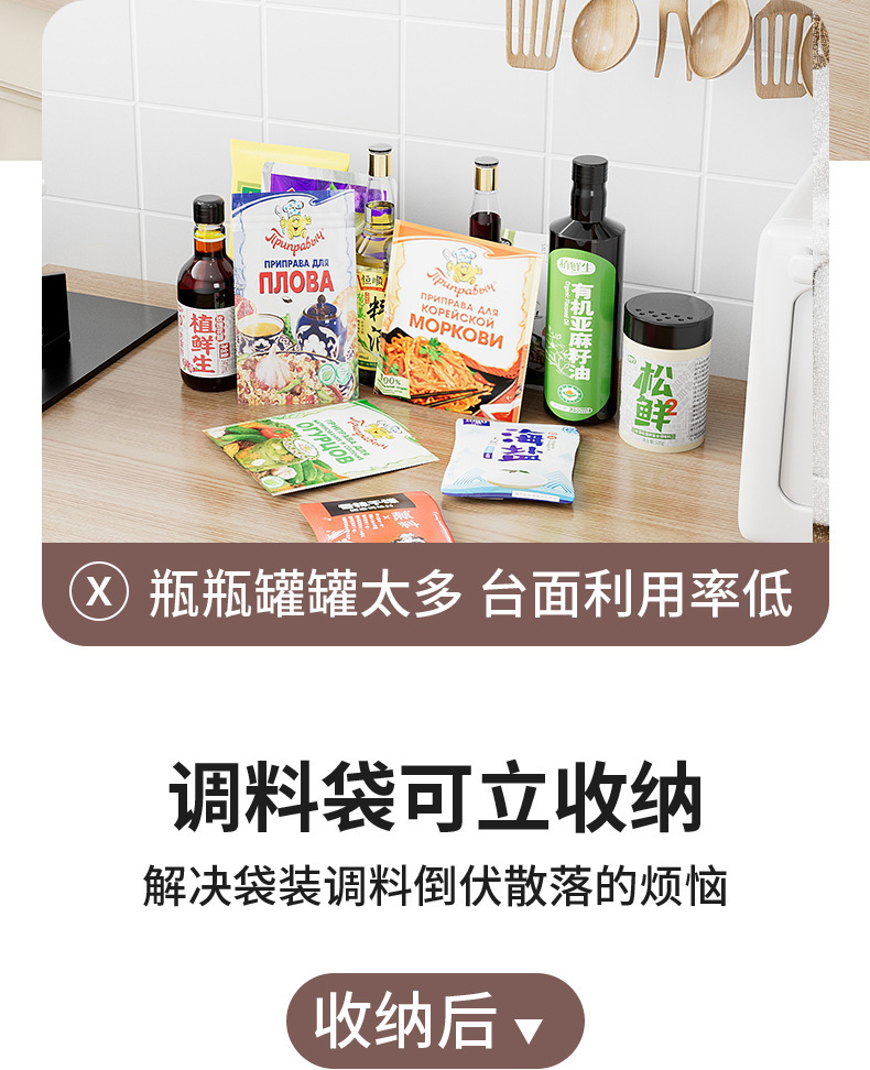 Caja de almacenamiento de condimento multifuncional, bolsa de condimento de cocina para el hogar, tanque, estante especial para condimento de artefacto de almacenamiento de cuadrícula dividida