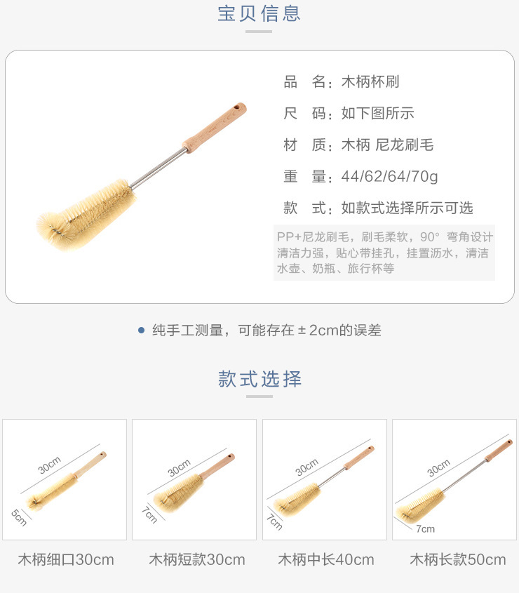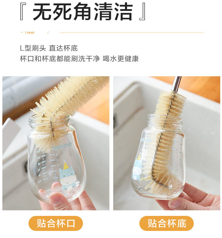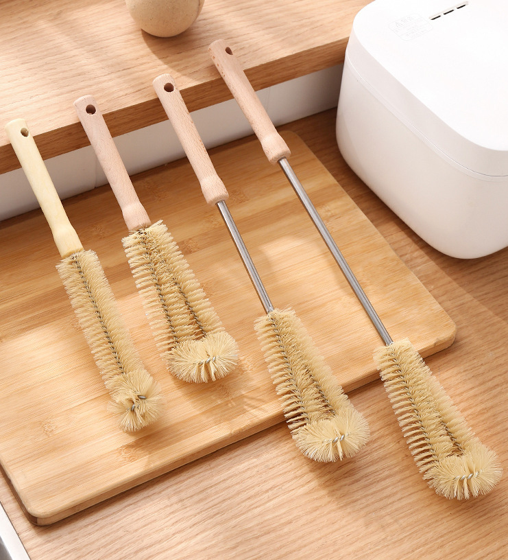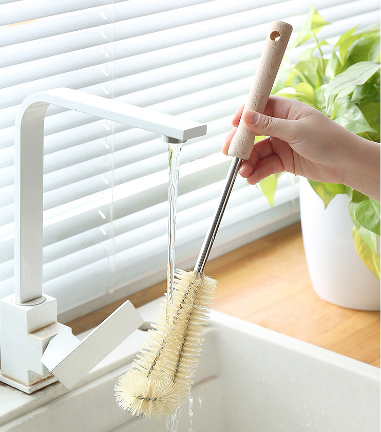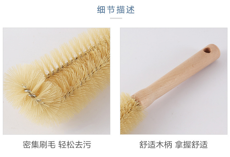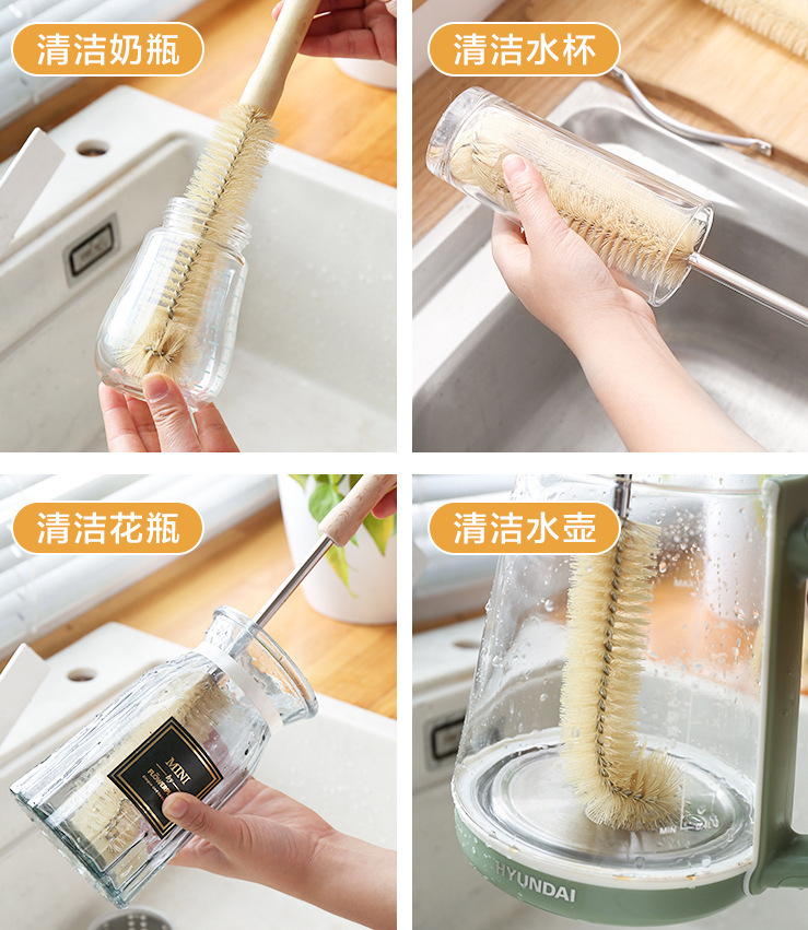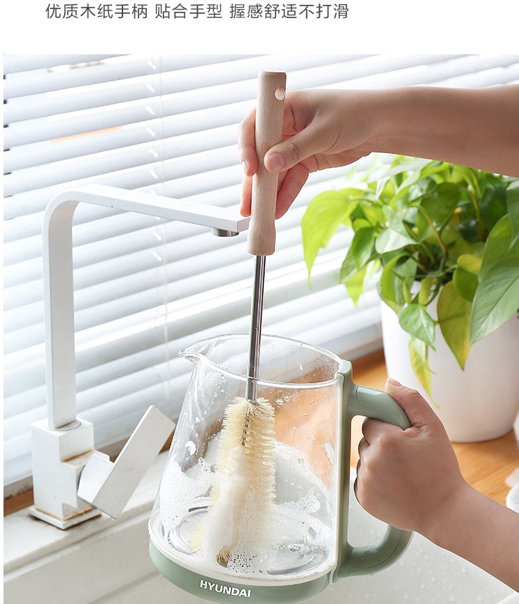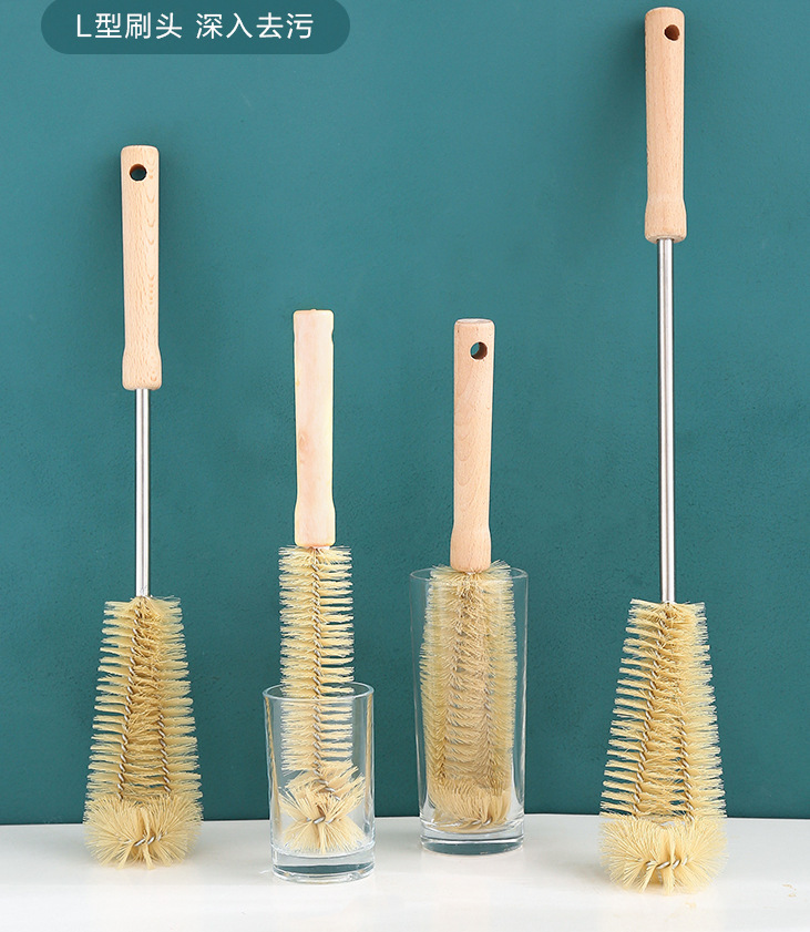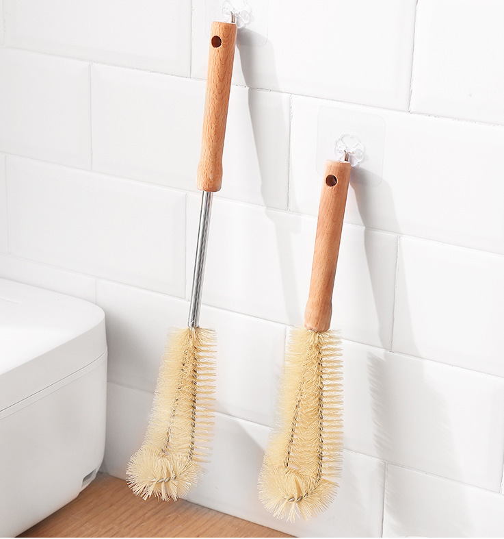 Hogar mango de madera alargado Copa cepillo biberón cepillo nylon cocina vidrio ventosa mango largo limpieza Copa cepillo