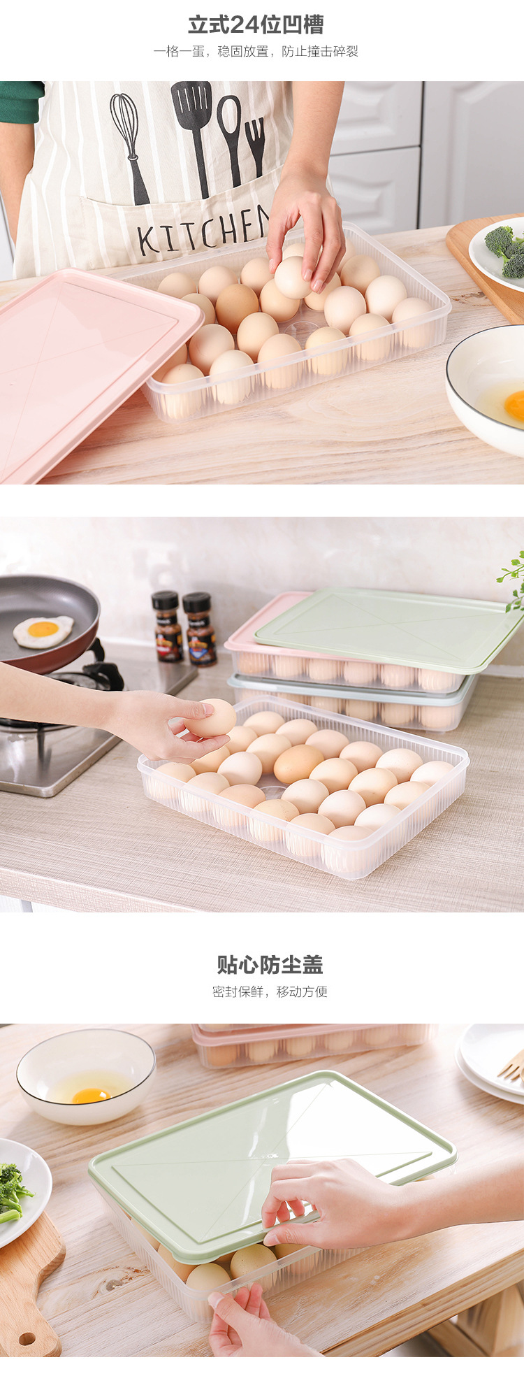Cocina creativa organizador caja de huevos color 24-rejilla caja de almacenamiento de plástico inastillable refrigerador crisper al por mayor