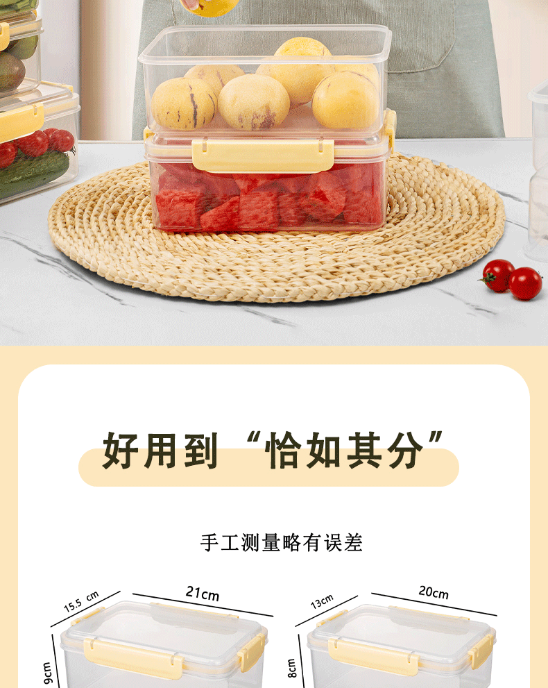 Caja de almacenamiento fresco Caja de plástico transparente Refrigerador rectangular Caja de almacenamiento de grado alimenticio sellado especial con cubierta