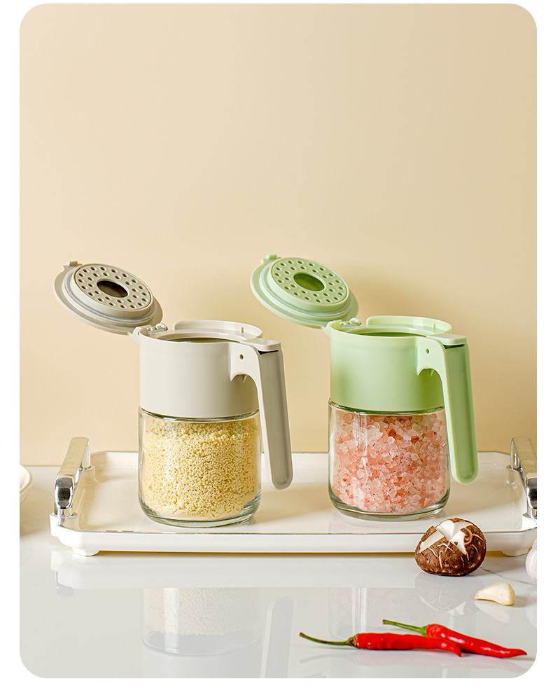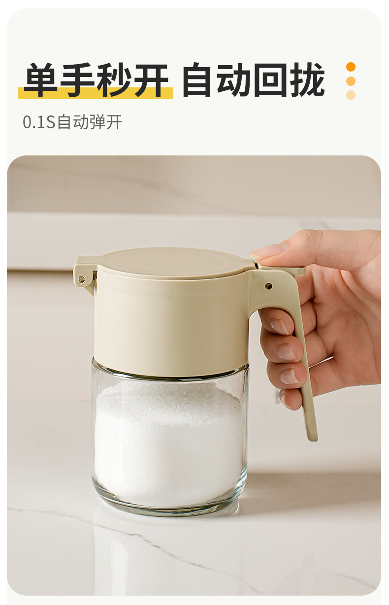 [Tarro de condimento sellado de cocina] frasco de condimento a prueba de humedad de vidrio cuantitativo sal de azúcar doméstica MSG botella de condimento de frasco de esencia de pollo