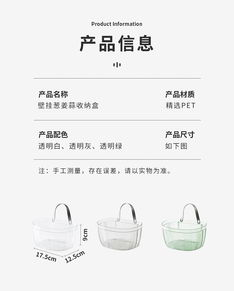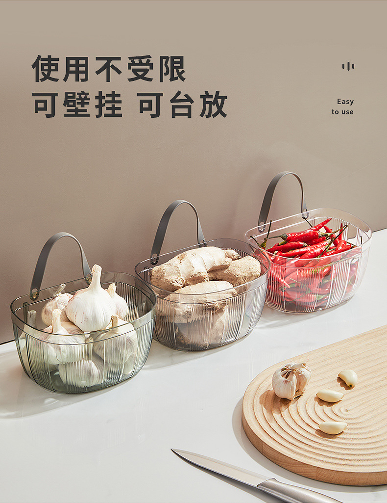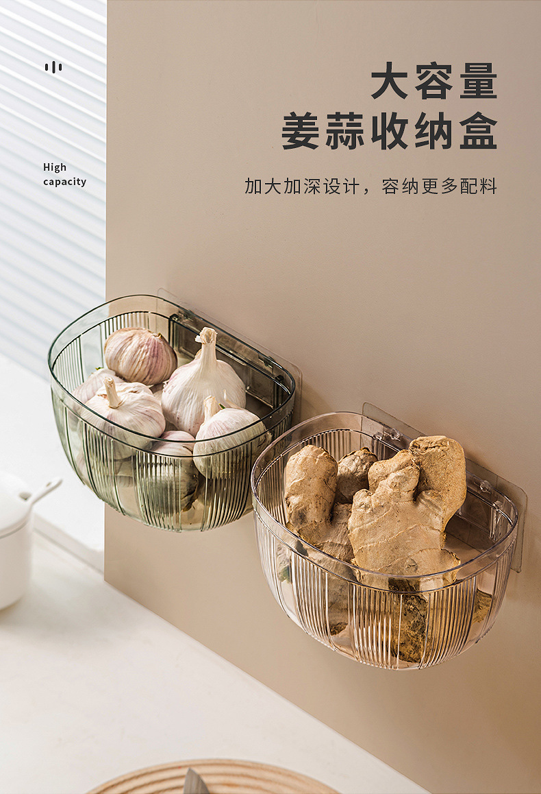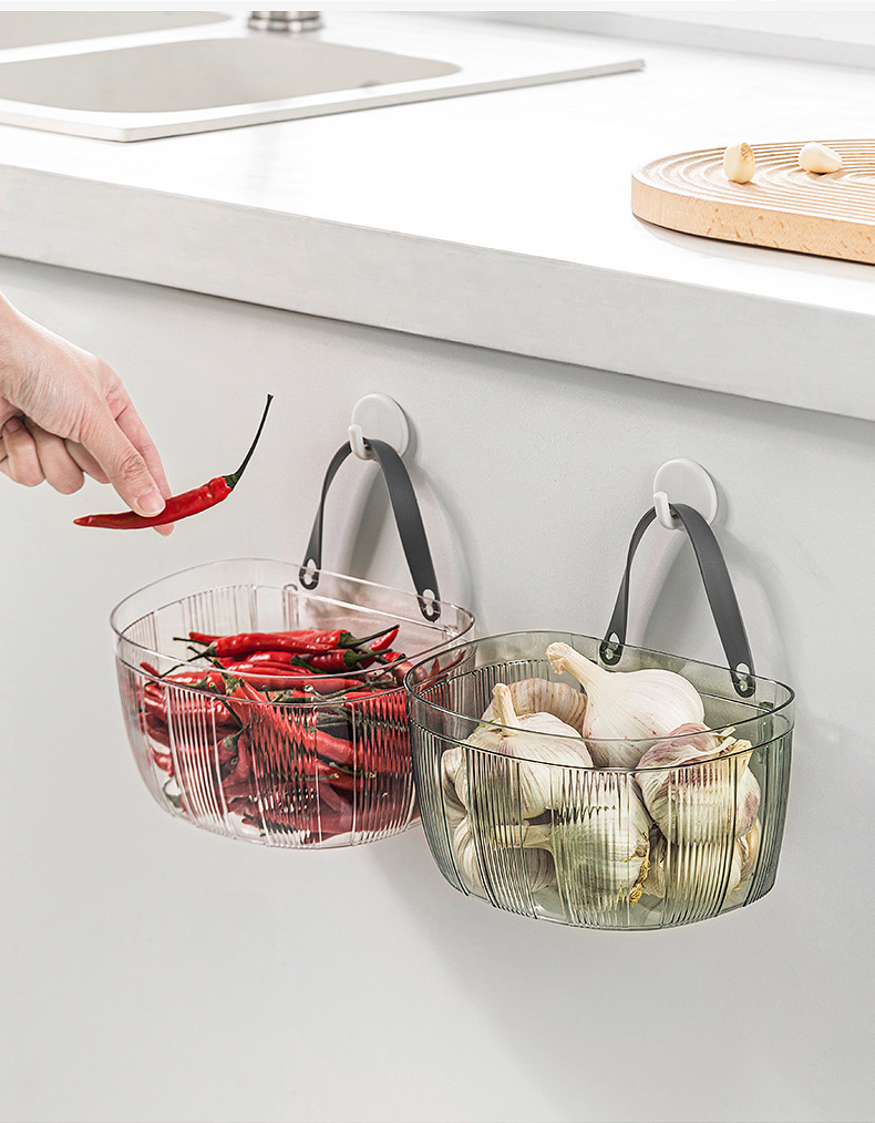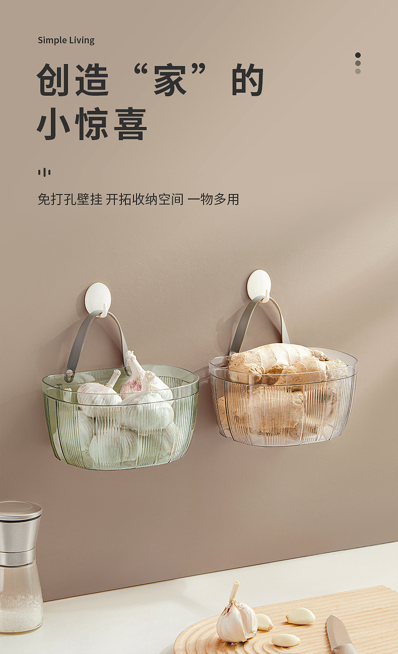 Cesta de almacenamiento de jengibre y ajo montada en la pared del hogar cocina cesta de almacenamiento de gran capacidad cosméticos Baño Oficina cesta de almacenamiento sin costuras