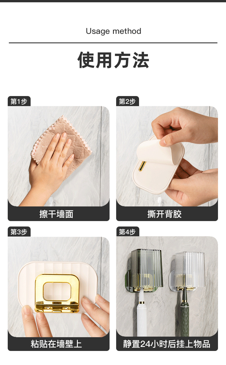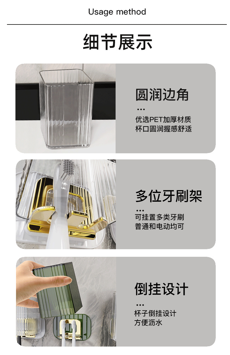 Cepillo de dientes rack montado en la pared baño libre de ponche cepillo de dientes eléctrico de almacenamiento rack Luz de lujo cepillo de dientes enjuague bucal taza traje