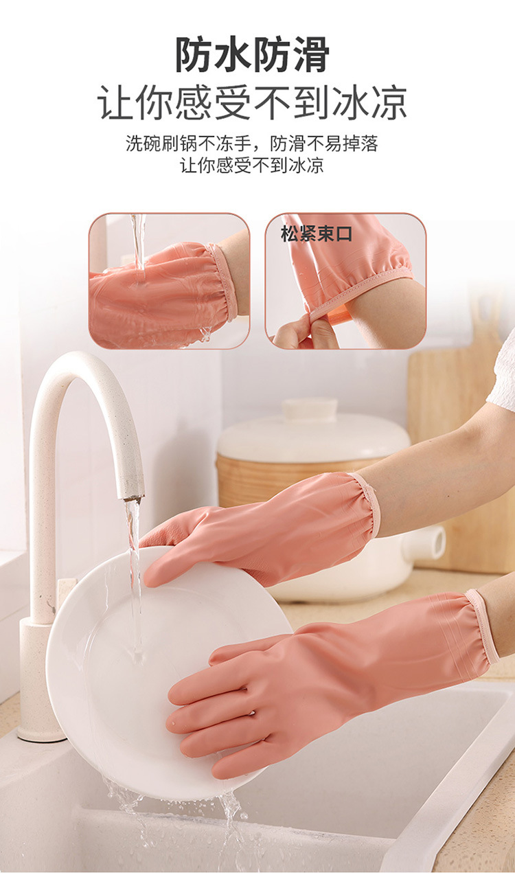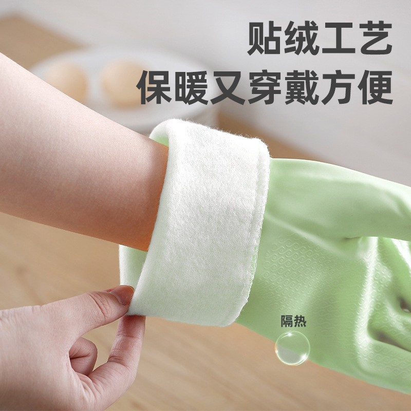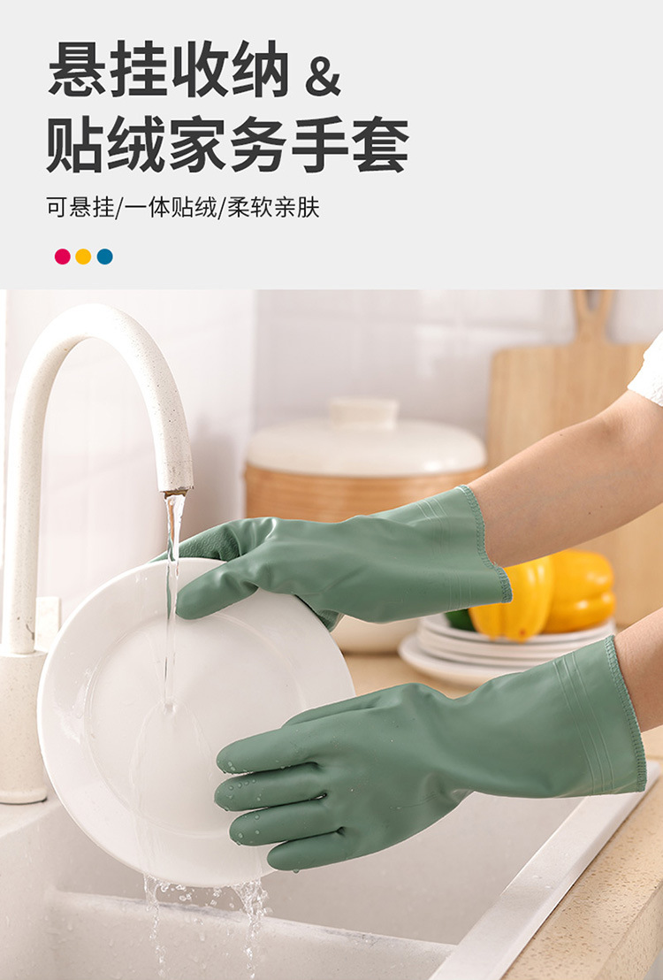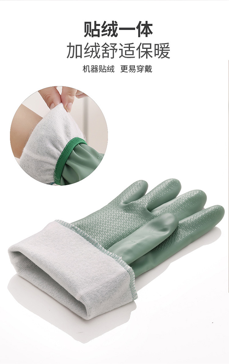 Lavaplatos guantes cortos colgantes guantes domésticos forrados de lana de PVC de limpieza de la cocina de goma de lavandería otoño e invierno cálido
