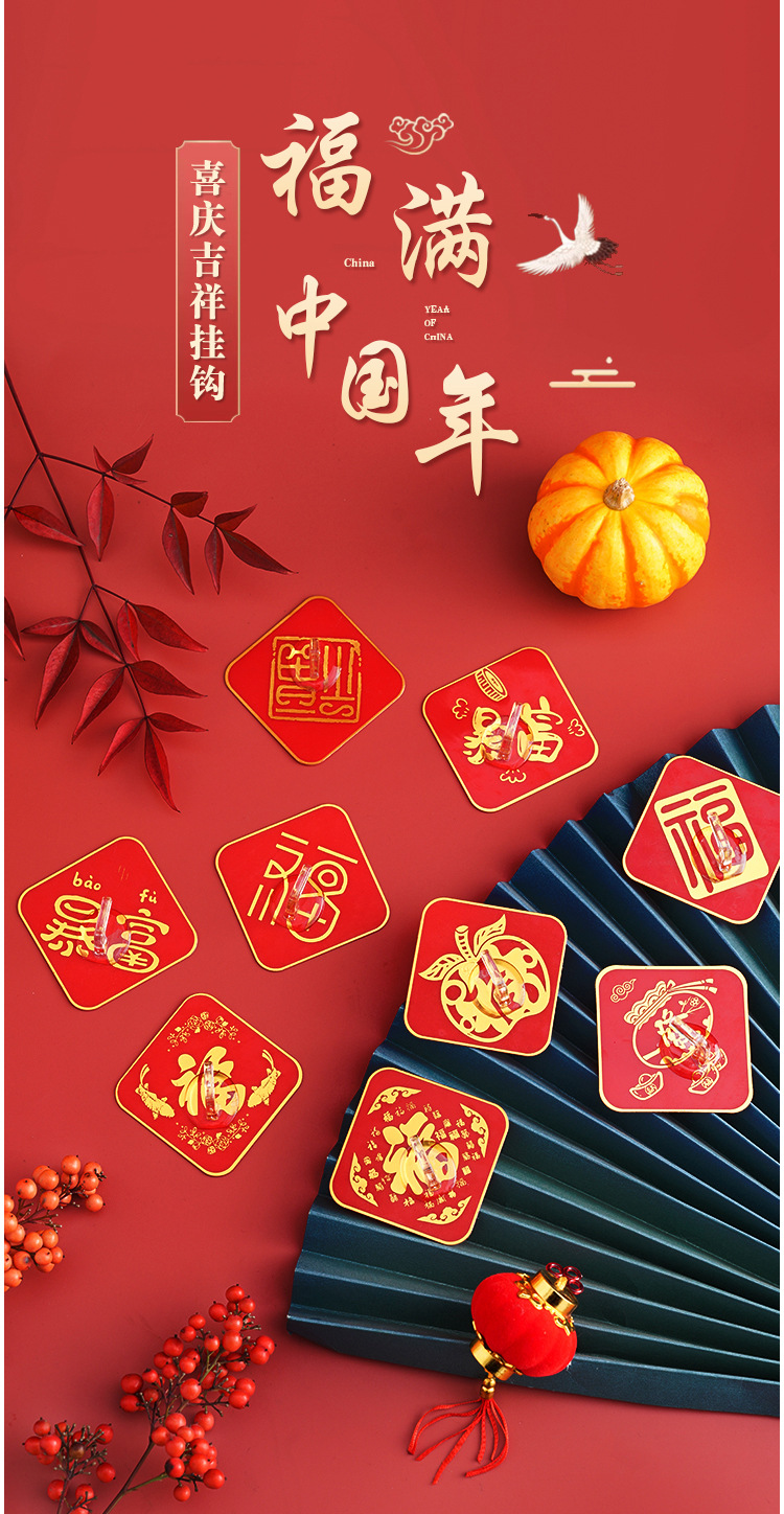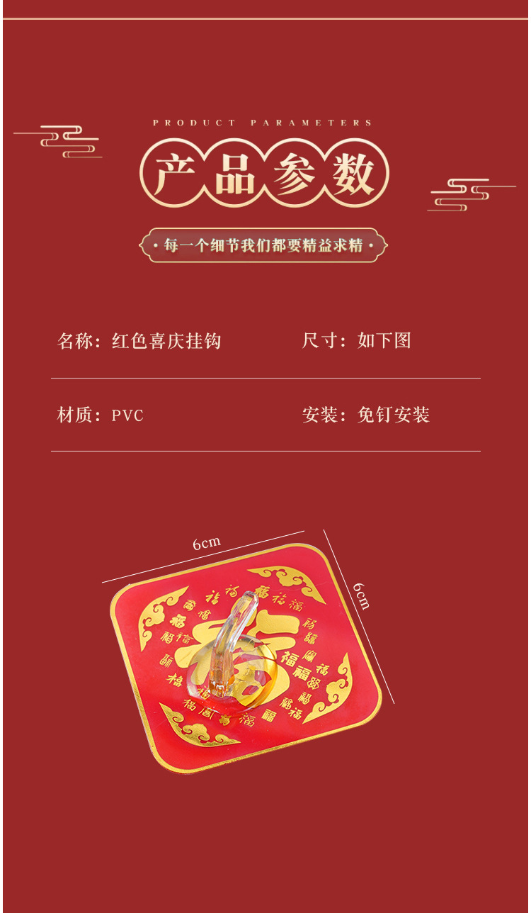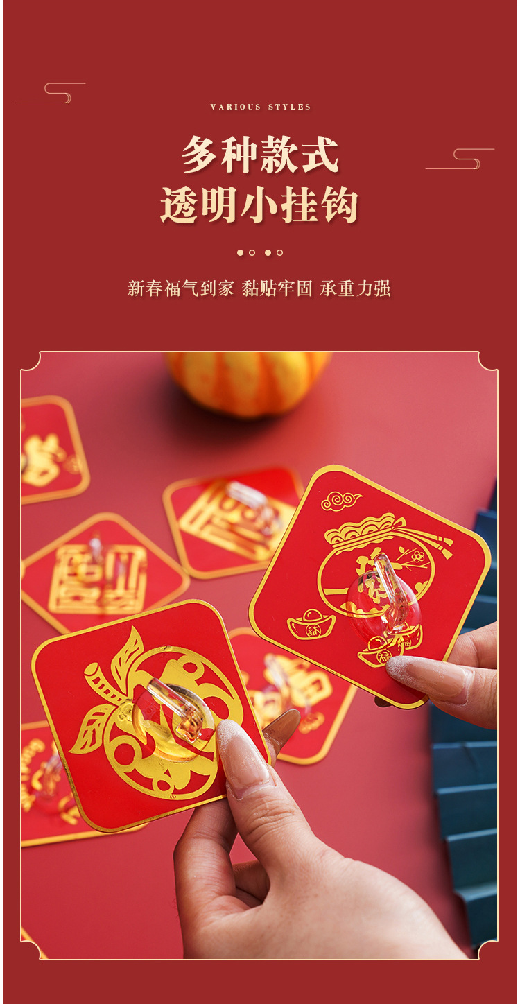 [Festival de Año Nuevo fuerte colgante] gancho sin perforación gancho adhesivo Fu Shuangxi word parche sin huellas sabor de Año Nuevo colgante Fu word