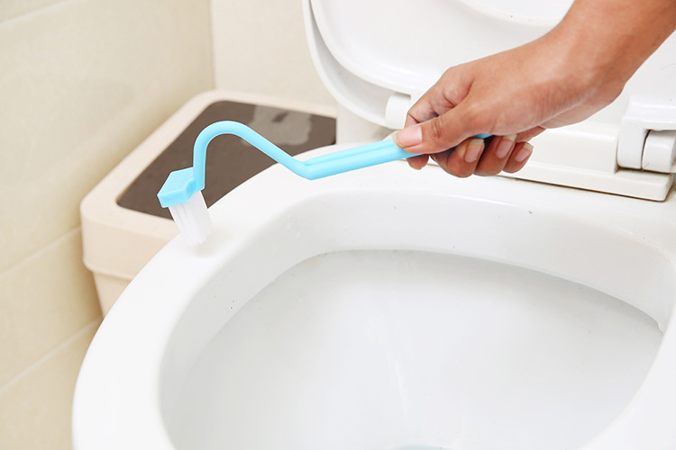 Cepillo de inodoro con cepillo de mango largo Cepillo de limpieza de ángulo muerto Cepillo de flexión interior de inodoro de plástico en forma de V