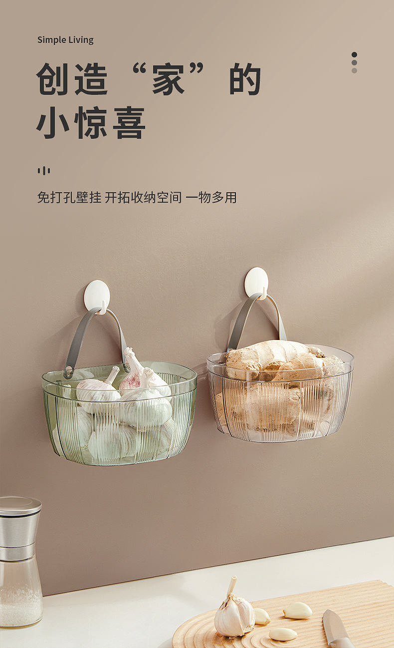 Cesta de almacenamiento cesta de almacenamiento de cebolla, jengibre y ajo cocina sin perforaciones cesta de almacenamiento montada en la pared cesta colgante de vegetales creativa hogar multifuncional