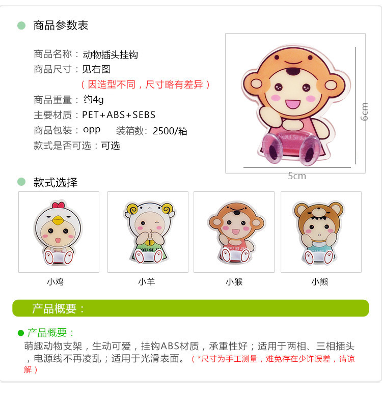 Hogar cable de alimentación de almacenamiento rack de dibujos animados pequeño animal Punch-libre creativo lindo mascota animal pies sin costura gancho pegajoso