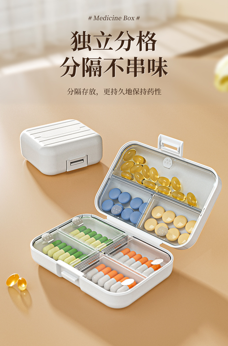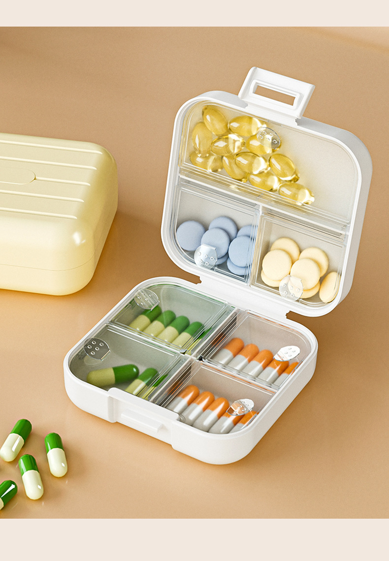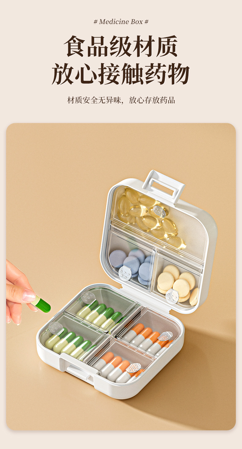 Caja de liberación de medicamentos portátiles, caja de almacenamiento dividida, tabletas selladas, caja de liberación dividida, tres comidas al día durante siete días.