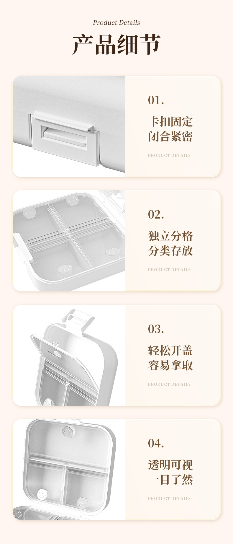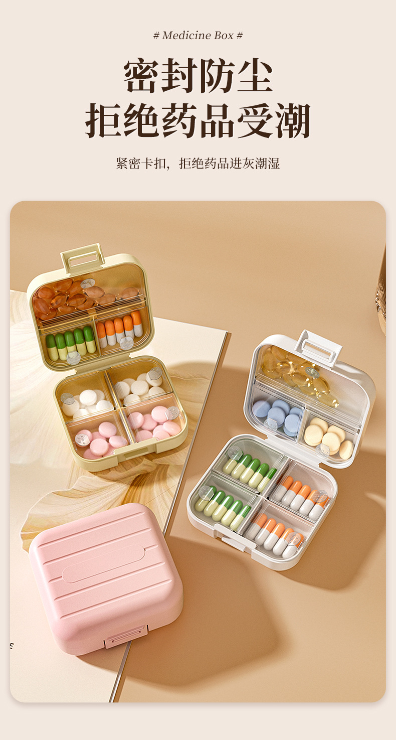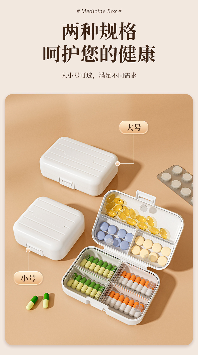 Caja de liberación de medicamentos portátiles, caja de almacenamiento dividida, tabletas selladas, caja de liberación dividida, tres comidas al día durante siete días.