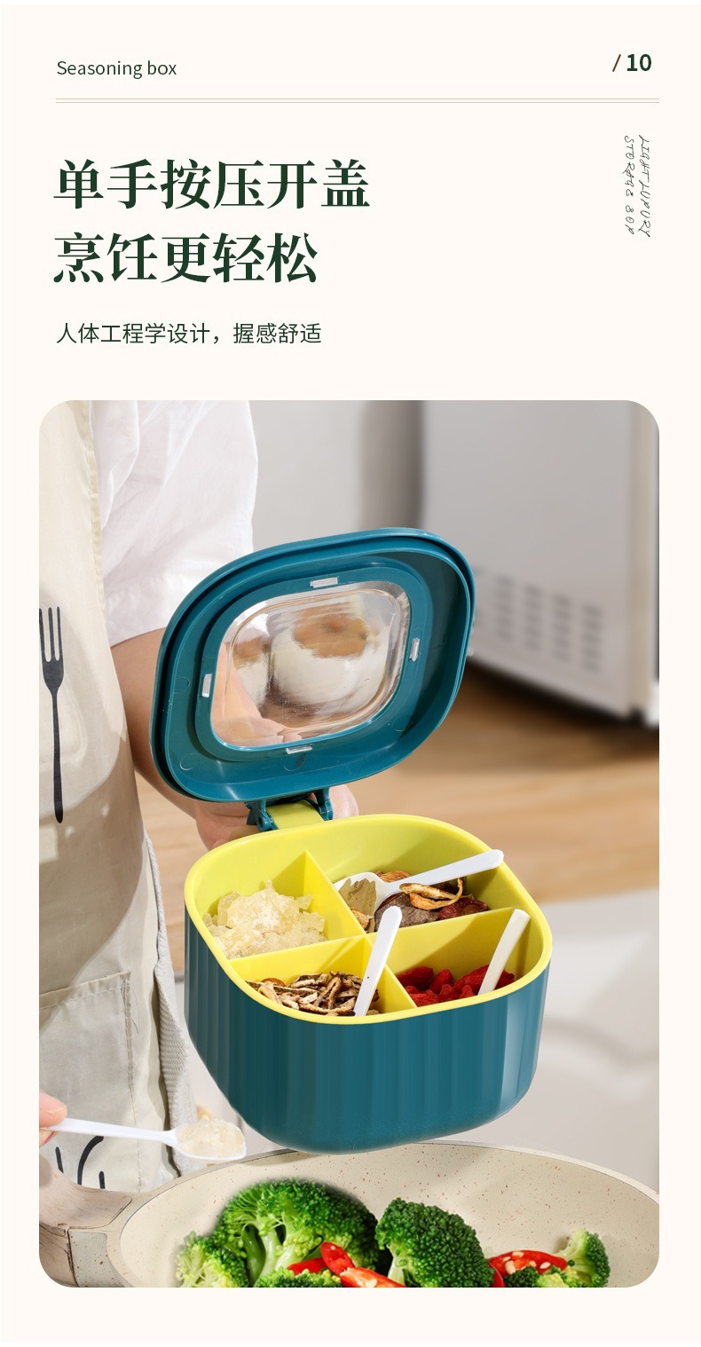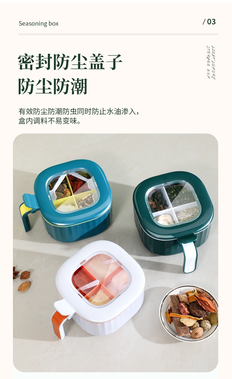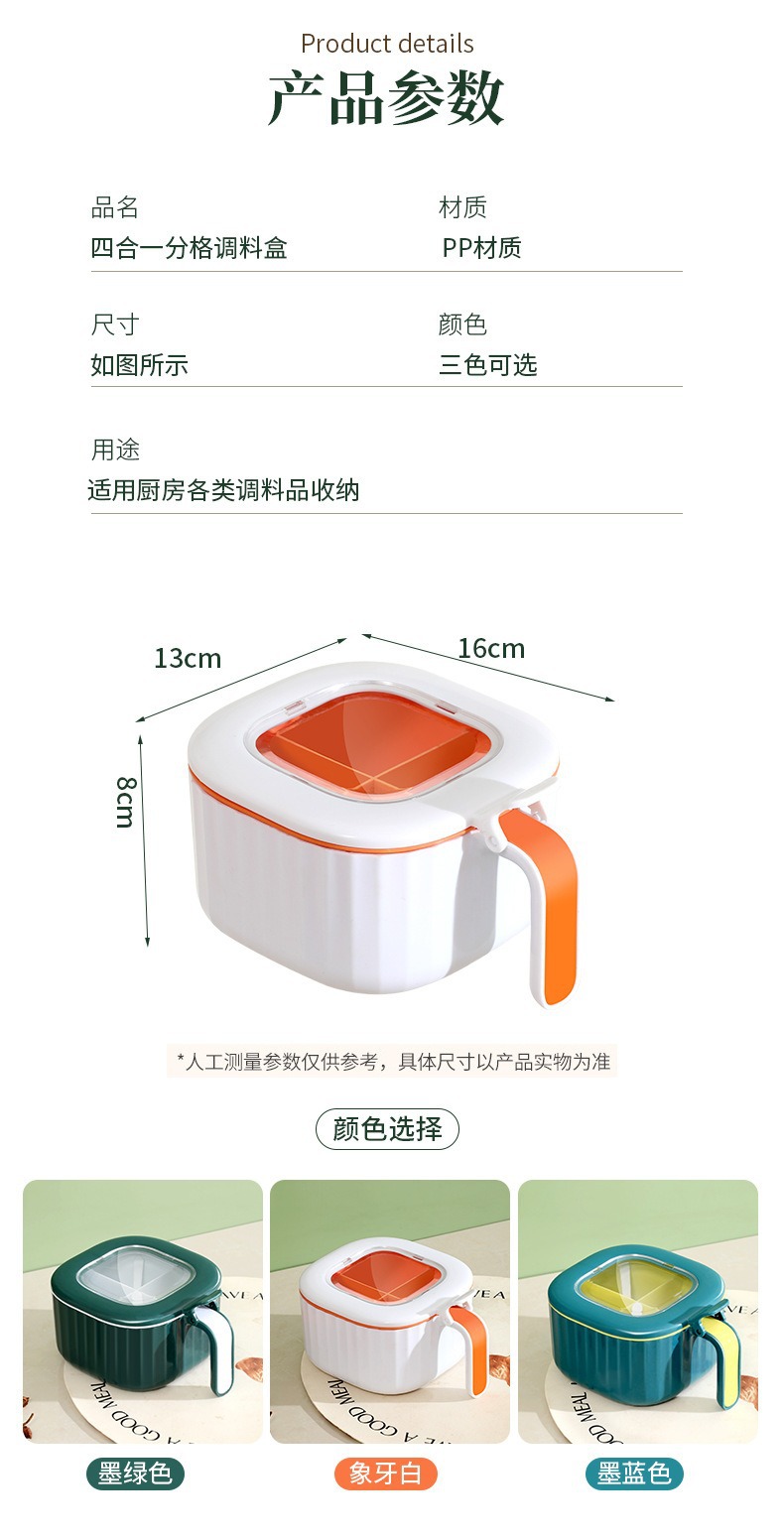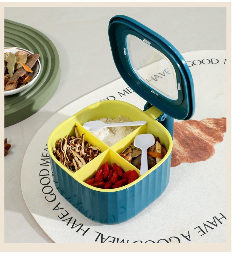 Caja de condimentos Cocina multifuncional Caja de almacenamiento de condimentos domésticos de cuatro en uno Caja de condimentos a prueba de humedad y polvo