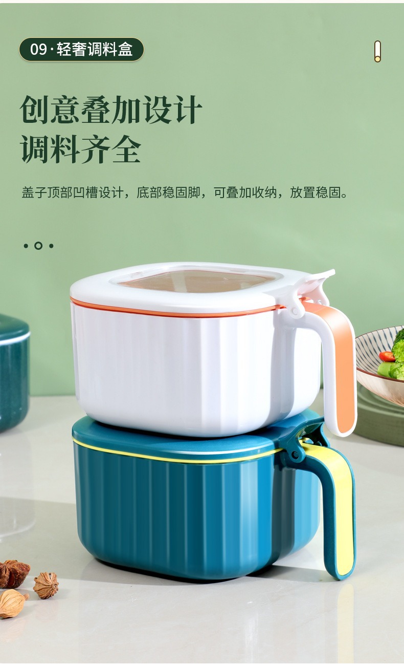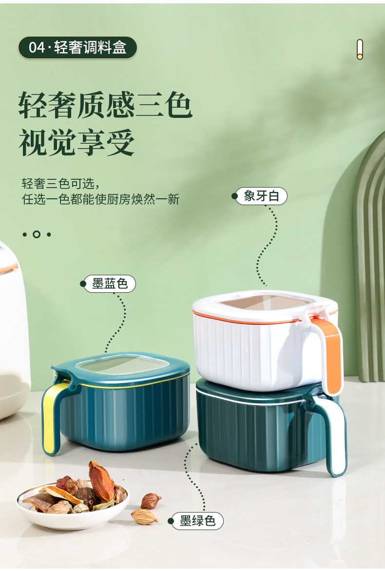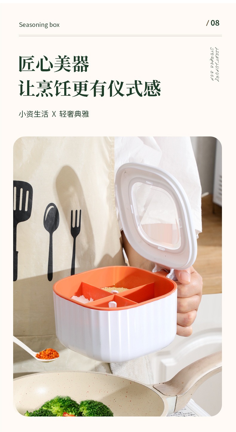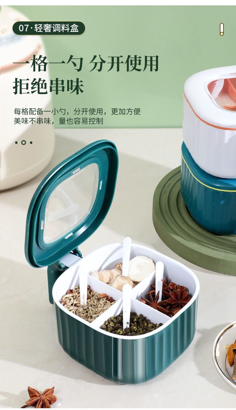 Caja de condimentos Cocina multifuncional Caja de almacenamiento de condimentos domésticos de cuatro en uno Caja de condimentos a prueba de humedad y polvo