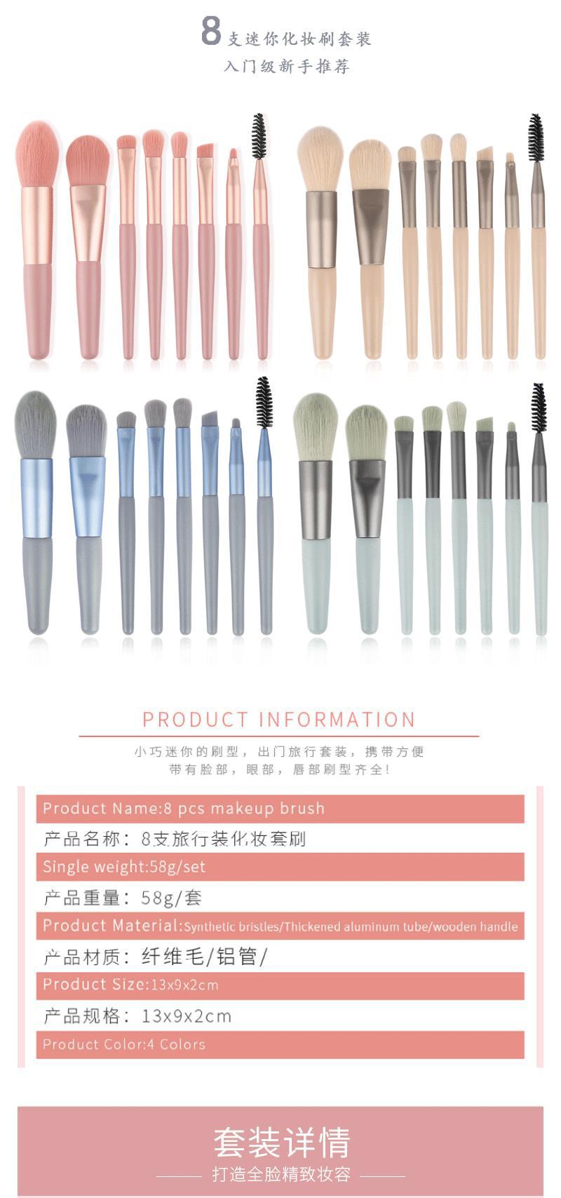 8 conjuntos de cepillo suave sin cara de maquillaje cepillo portátil paquete de almacenamiento pequeño conjunto de blush de sombra de ojos resaltado cepillo de sombra nasal