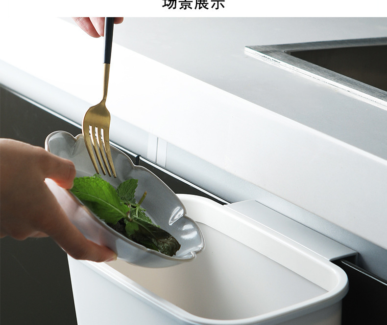 Puerta del Gabinete de cocina colgante tamaño pequeño cubo de basura escritorio del hogar caja de almacenamiento de plástico colgante de pared cesta de basura