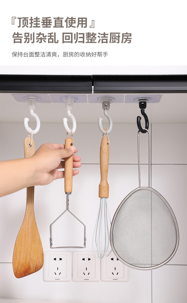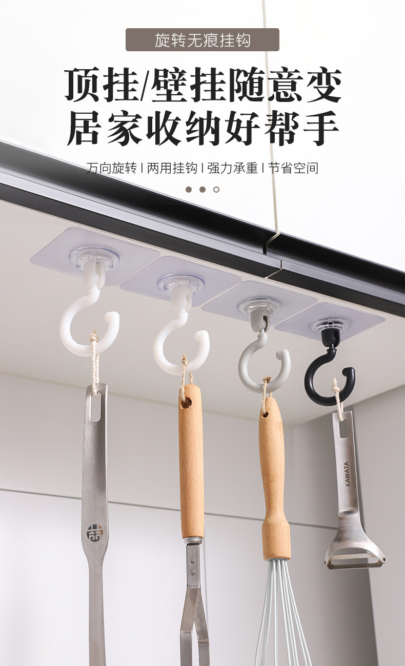 Gancho rotativo de techo, gancho adhesivo fuerte, gancho adhesivo multifuncional doméstico, llave de pared de cocina y baño, puerta colgante trasera, gancho de sombrero
