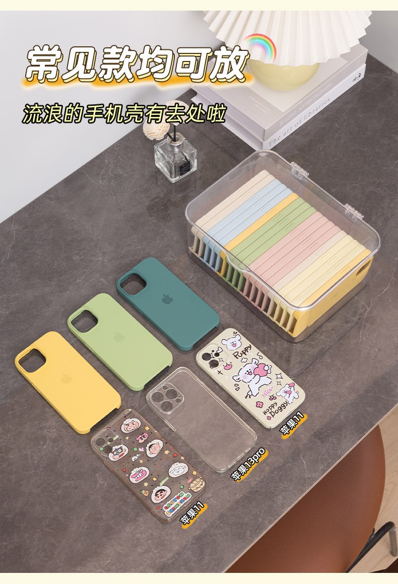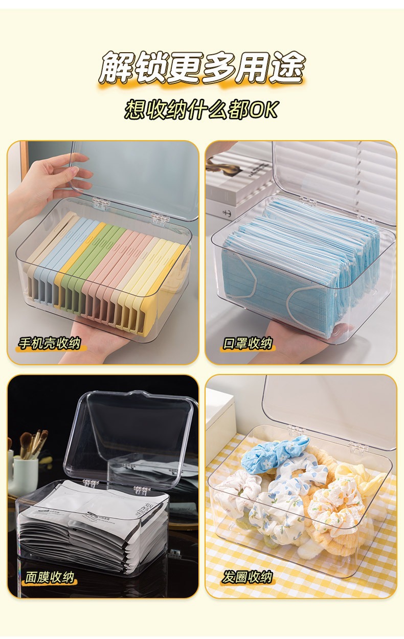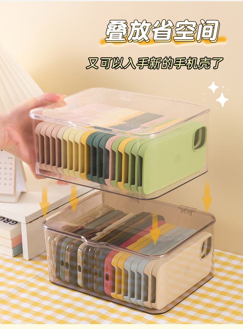 Caja de almacenamiento de caja de teléfono móvil con cubierta a prueba de polvo cajón de escritorio para almacenar artículos diversos para organizar el dormitorio artefactos mágicos almacenamiento transparente