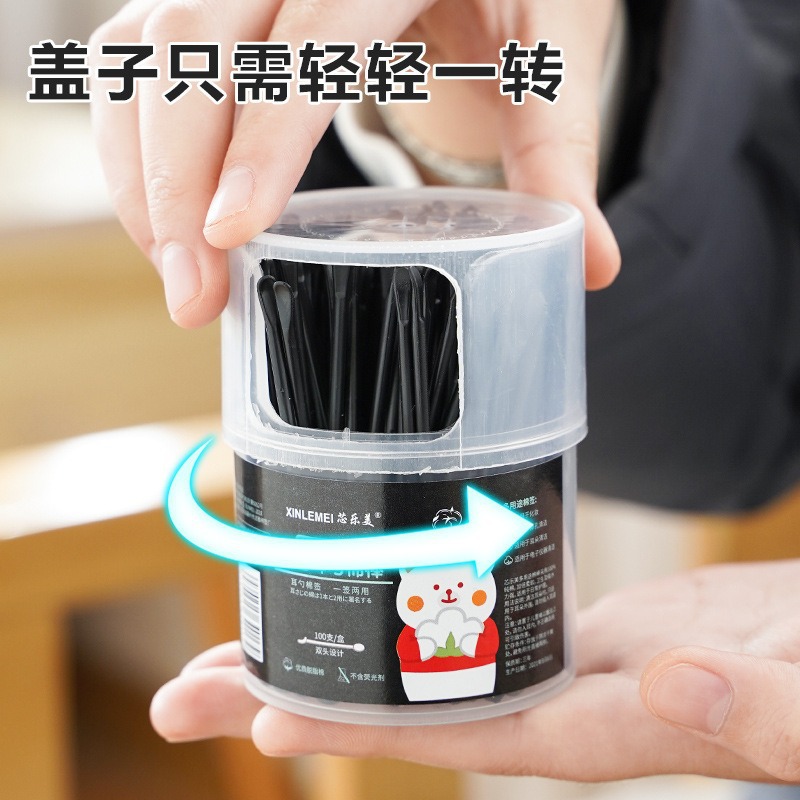Cuchara de orejas doméstica 2 - en - 1 100 tampones de algodón en caja, núcleo de plástico de algodón de doble cabeza, limpieza de orejas desechable, doble uso