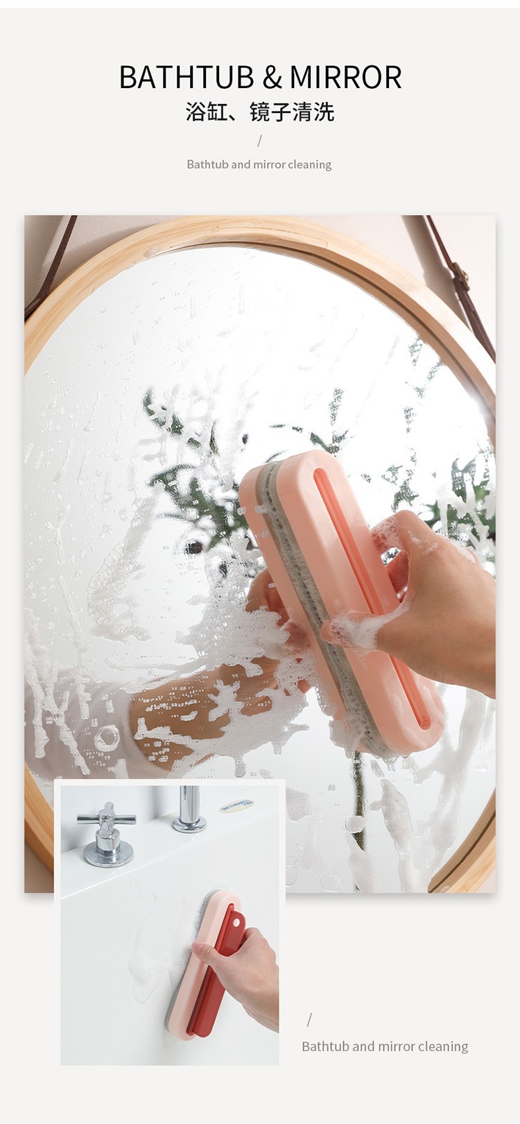 Limpieza y raspado de vidrio, espejo de baño creativo, limpieza de paredes, cepillo de raspado, raspado dos en uno, placa de agua, artefacto de ventana