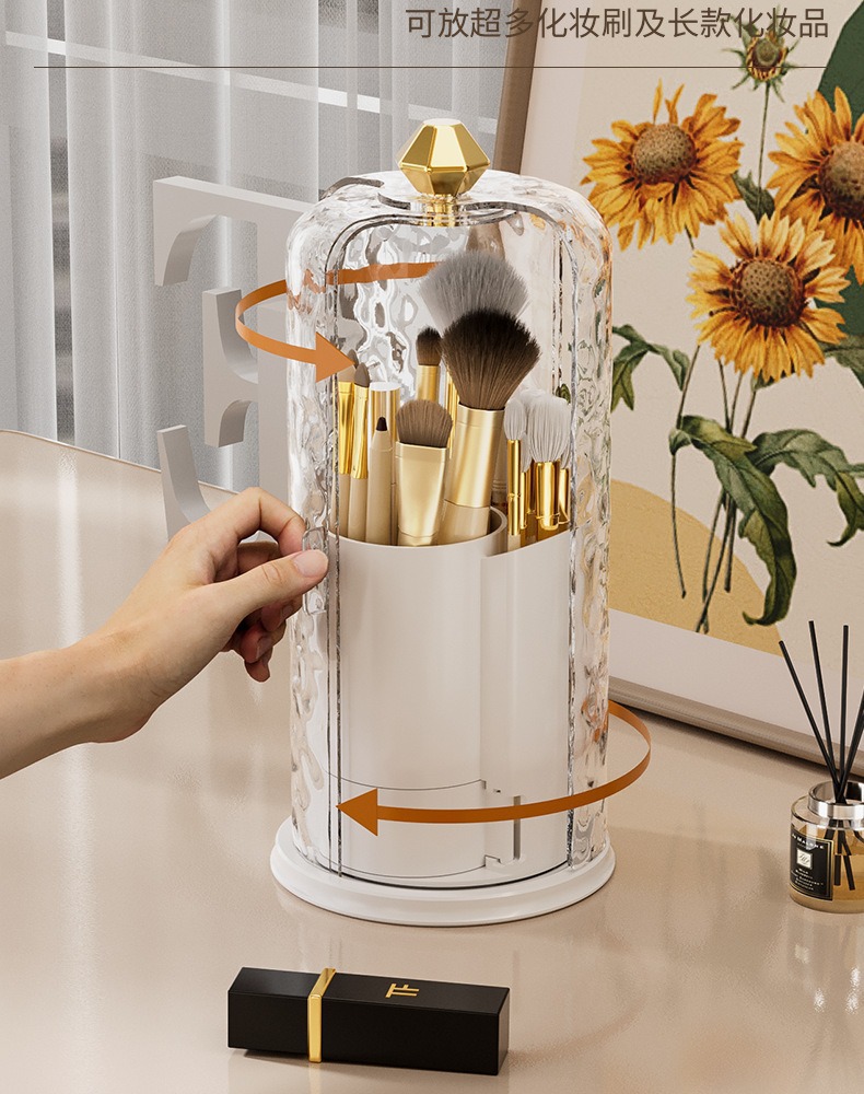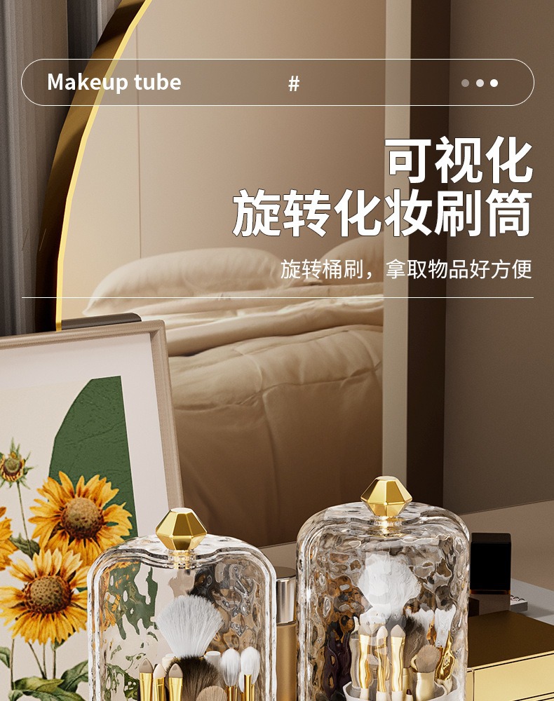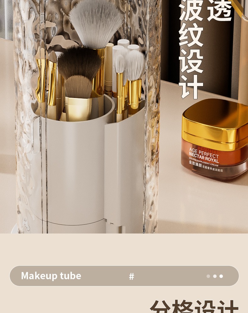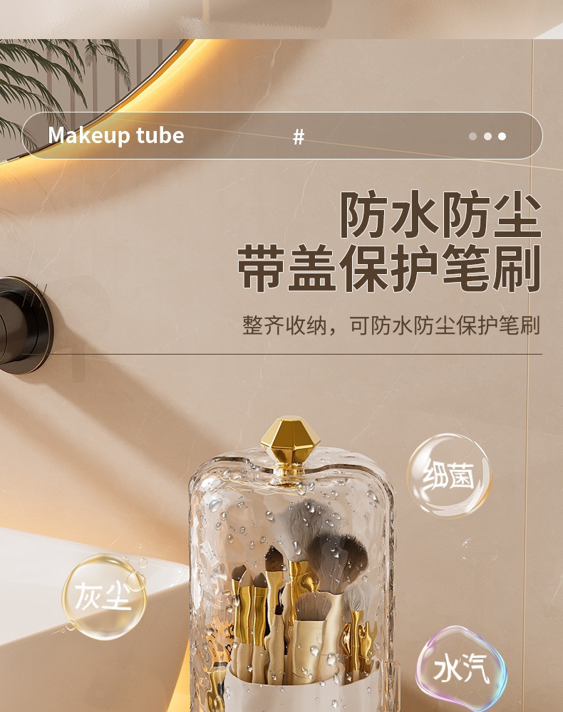 Tubo de almacenamiento de pinceles de maquillaje giratorio a prueba de polvo, caja de almacenamiento de cosméticos de escritorio, tocador, portalápices, estante de lápiz labial