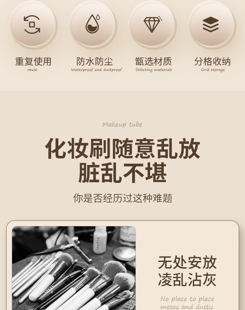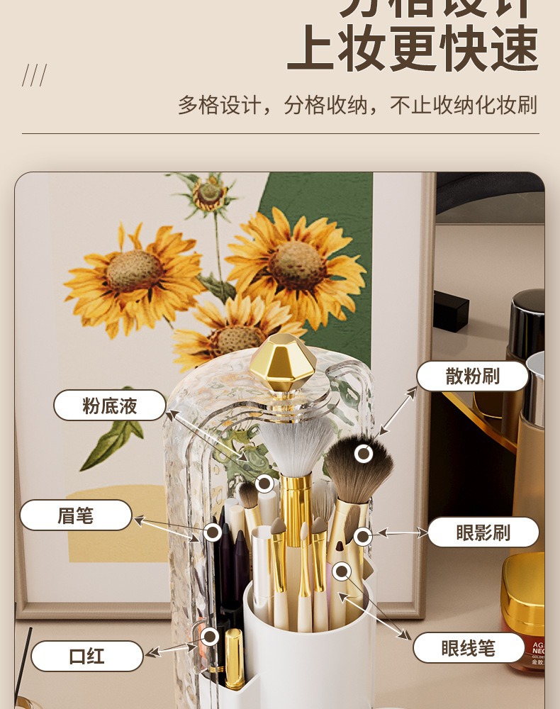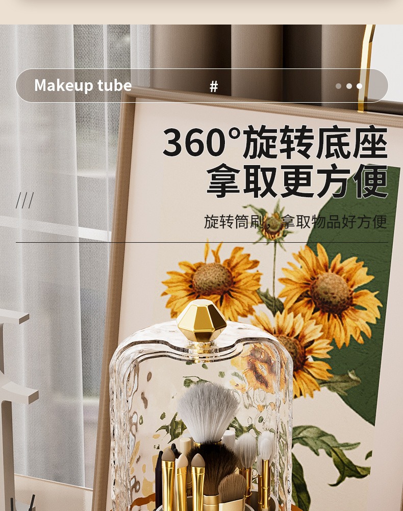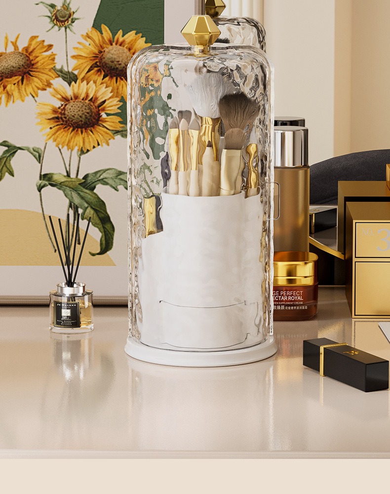 Tubo de almacenamiento de pinceles de maquillaje giratorio a prueba de polvo, caja de almacenamiento de cosméticos de escritorio, tocador, portalápices, estante de lápiz labial