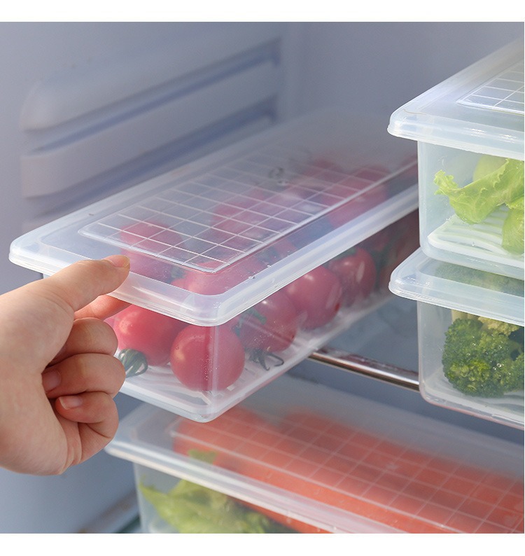 Refrigerador de pescado congelado, drenaje y mantenimiento fresco, caja sellada, caja de almacenamiento de clasificación de cocina, caja de almacenamiento en frío rectangular de plástico con tapa