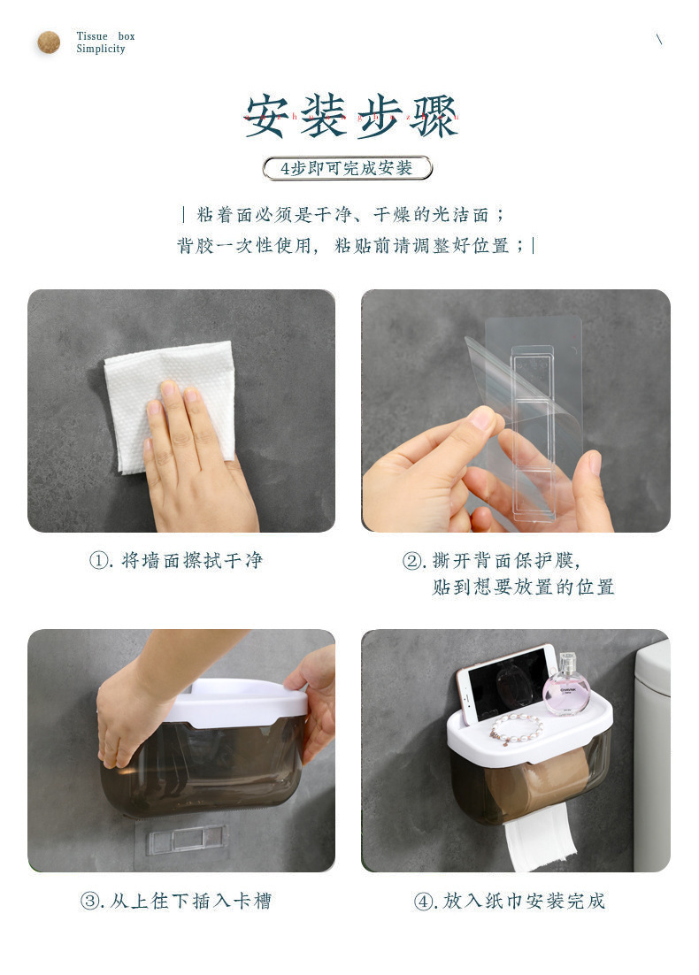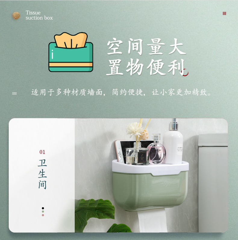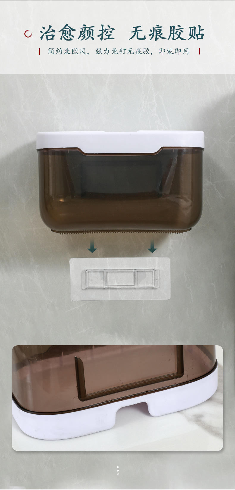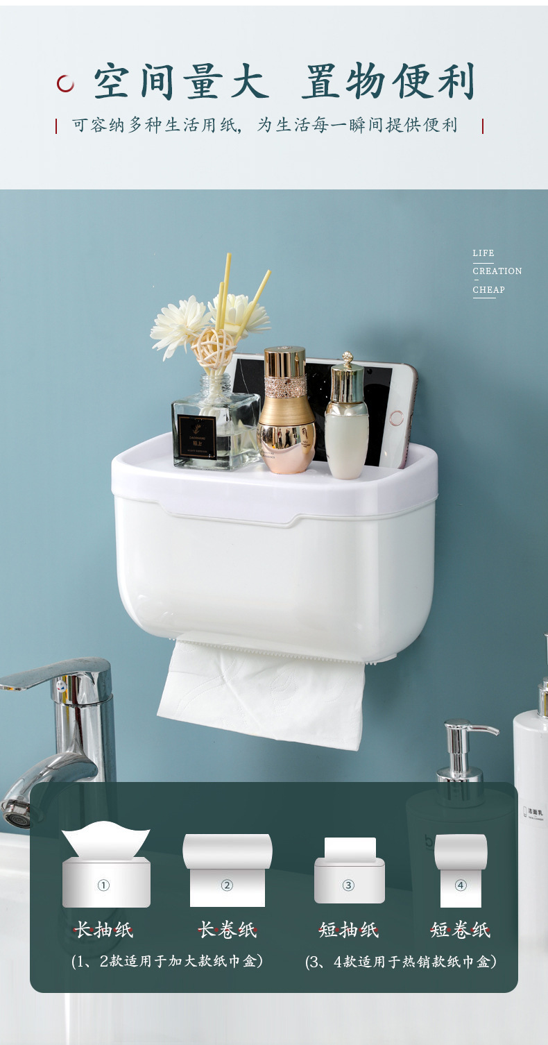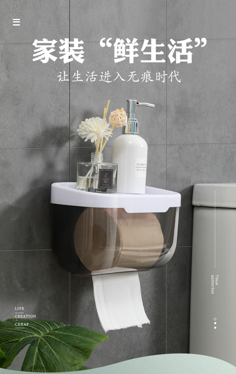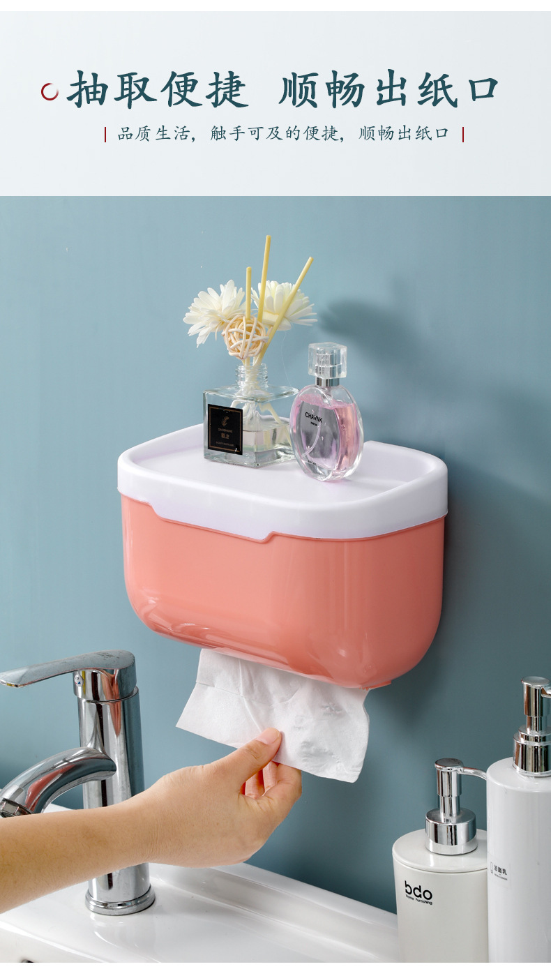 Caja de pañuelos para inodoros sin perforaciones, montada en la pared, inodoro para el hogar, soporte para rollo de papel higiénico, tubo para rollo impermeable de color sólido