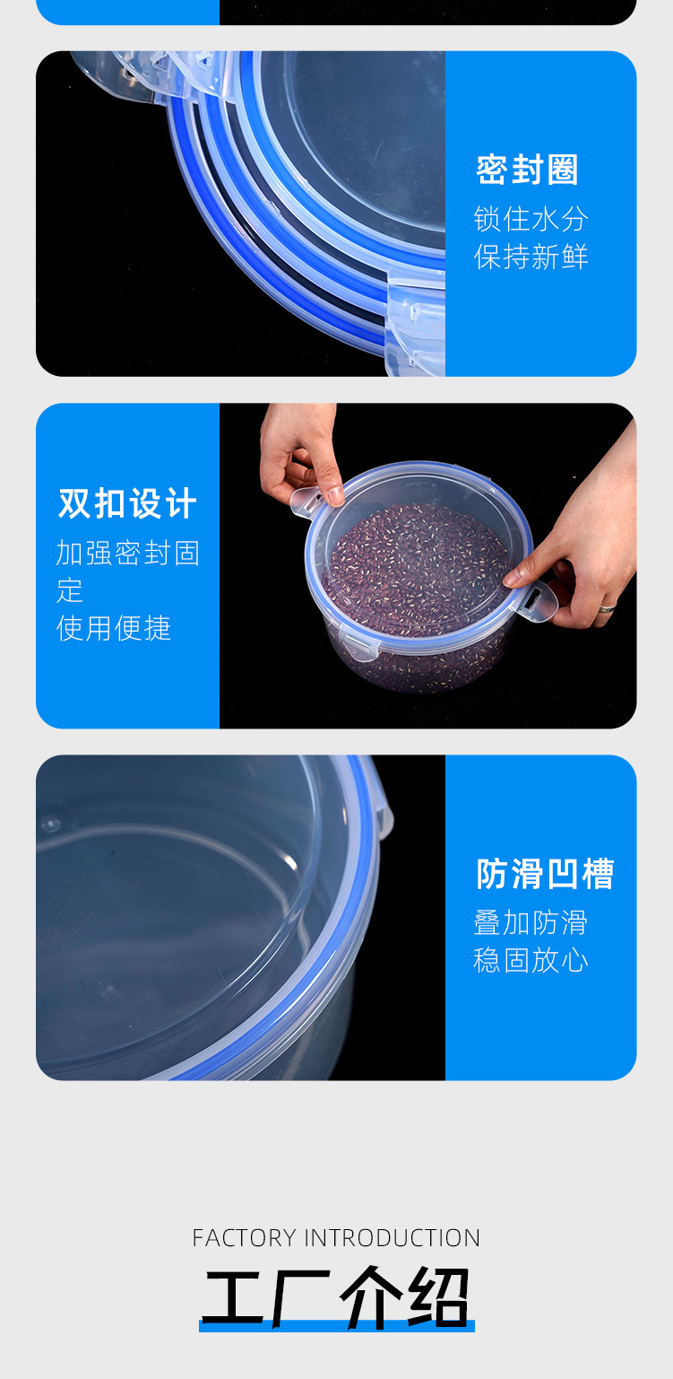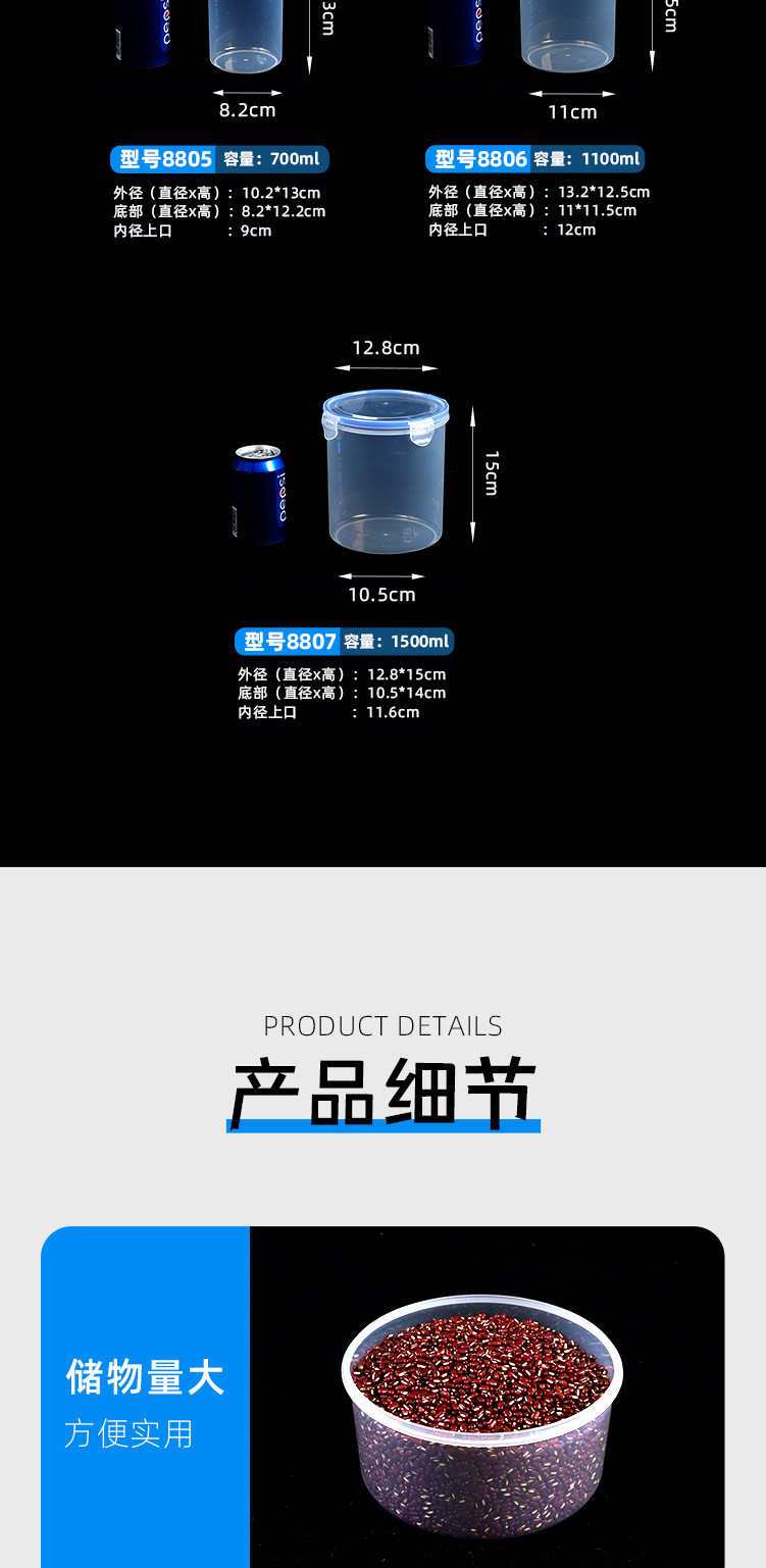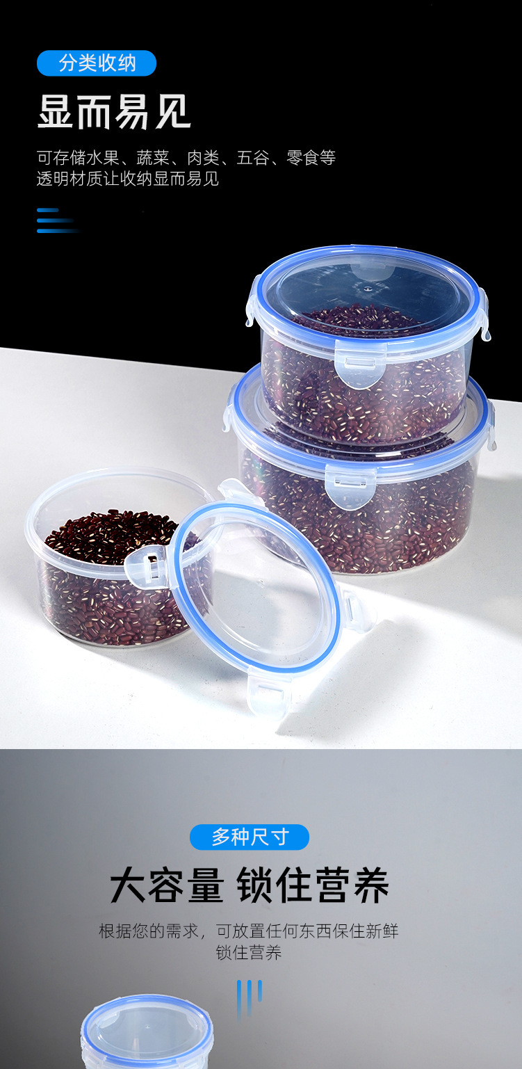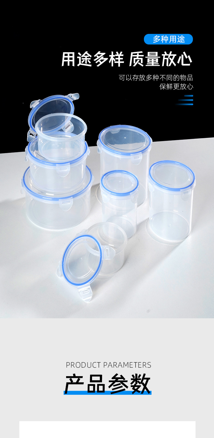 Caja de preservación de mascotas, lata de sellado de presión transparente redonda, lata de plástico, caja de almacenamiento de alimentos de granos, lata de almacenamiento