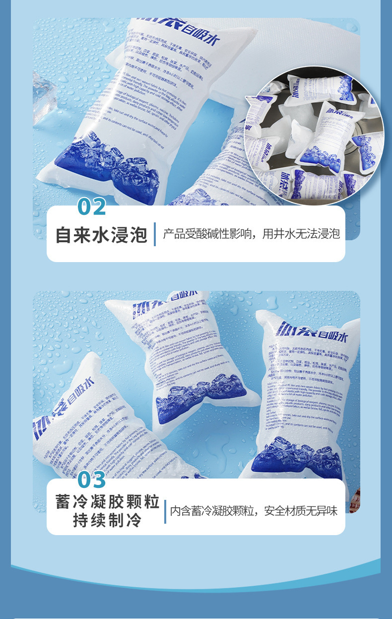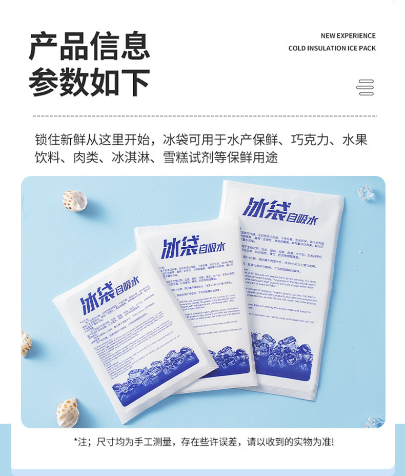 bolsa de hielo autoabsorbente desechable sin inyección de agua refrigeración rápida fresca portátil reutilizable bolsa de hielo no tejido