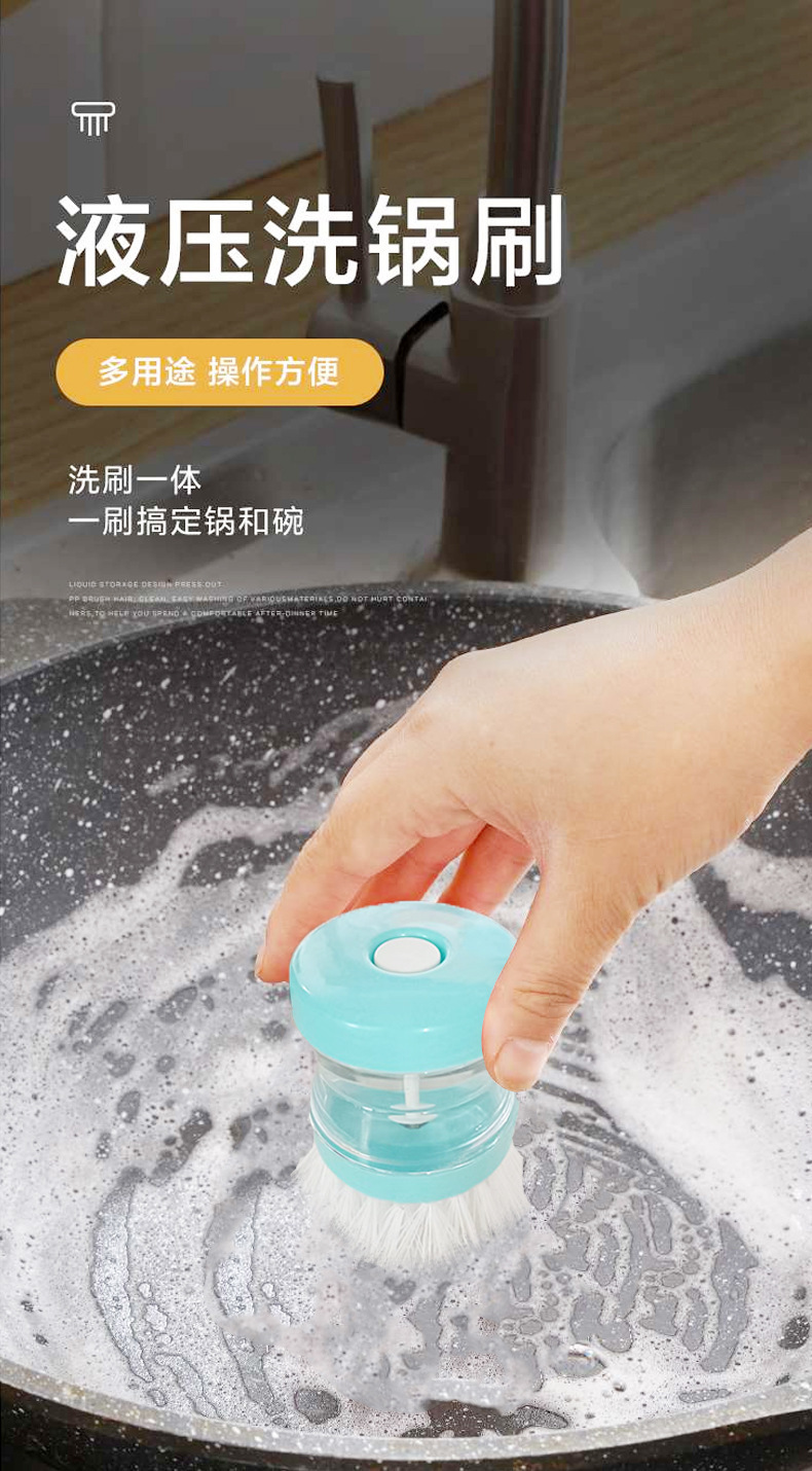 Prensa líquido lavado olla cepillo olla artefacto líquido automático añadir esponja cepillo de limpieza multifuncional cepillo de lavado de platos