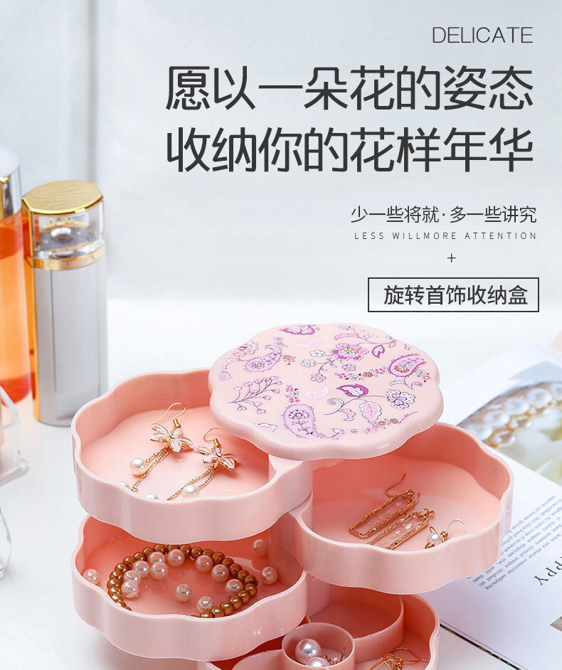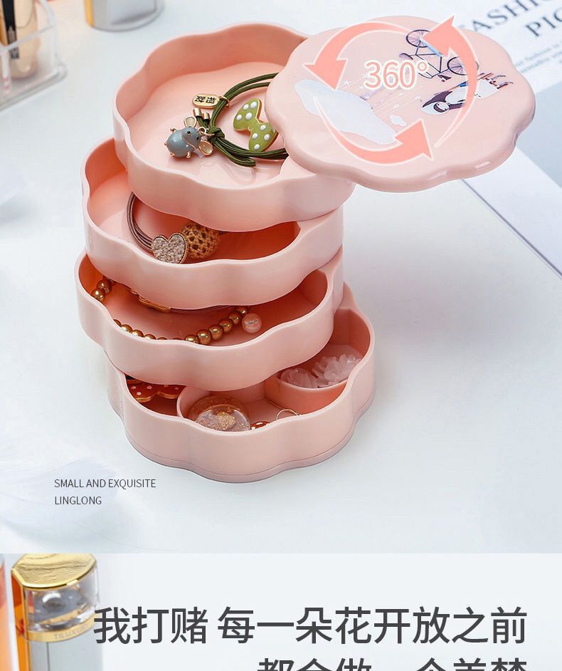 Multifuncional giratorio Mini caja de joyería multi-capa de escritorio Regalo de Cumpleaños pendientes collar caja de almacenamiento de joyas
