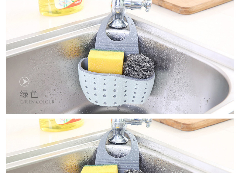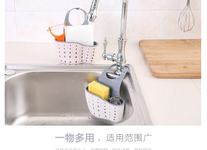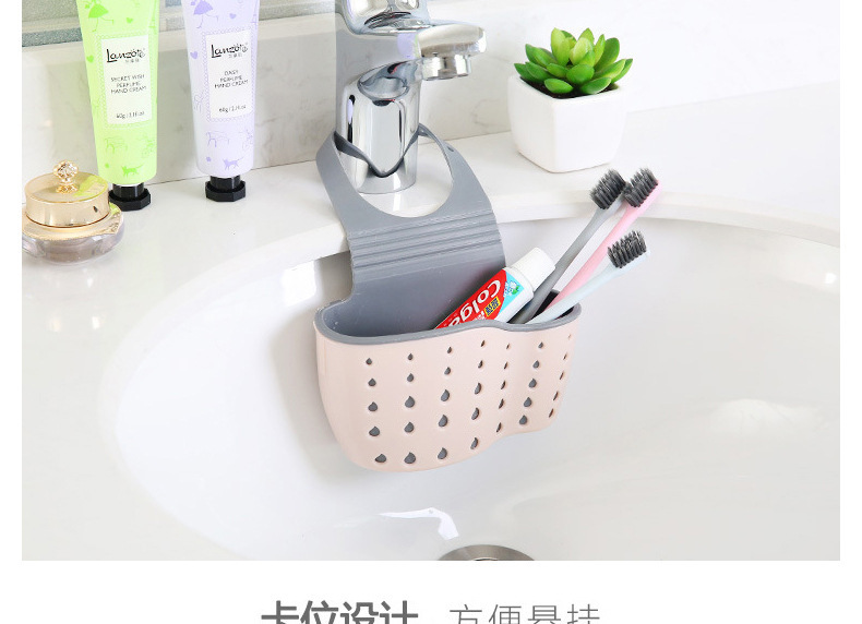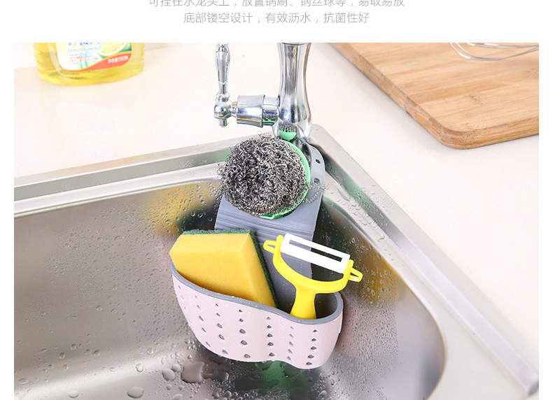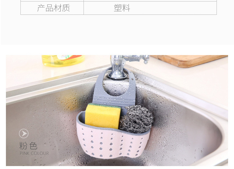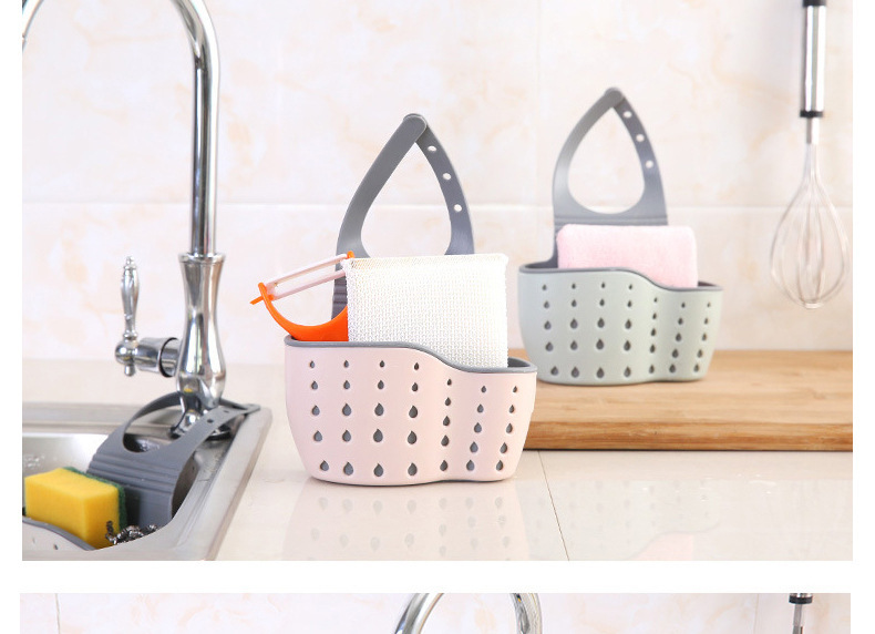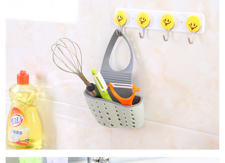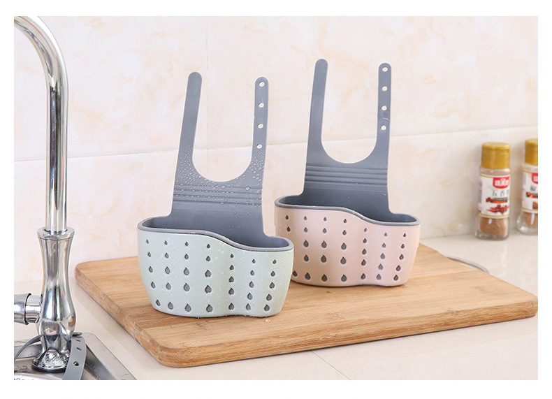Necesidades diarias cocina drenaje cesta colgante bolsa colgante hueco para lavar platos cesta de almacenamiento de esponja cesta de almacenamiento de plástico al por mayor