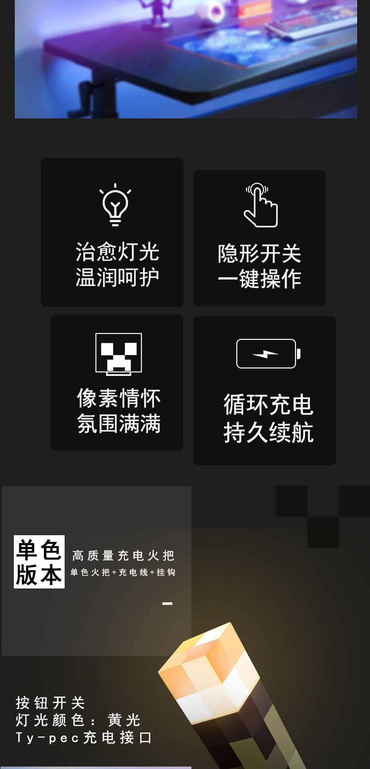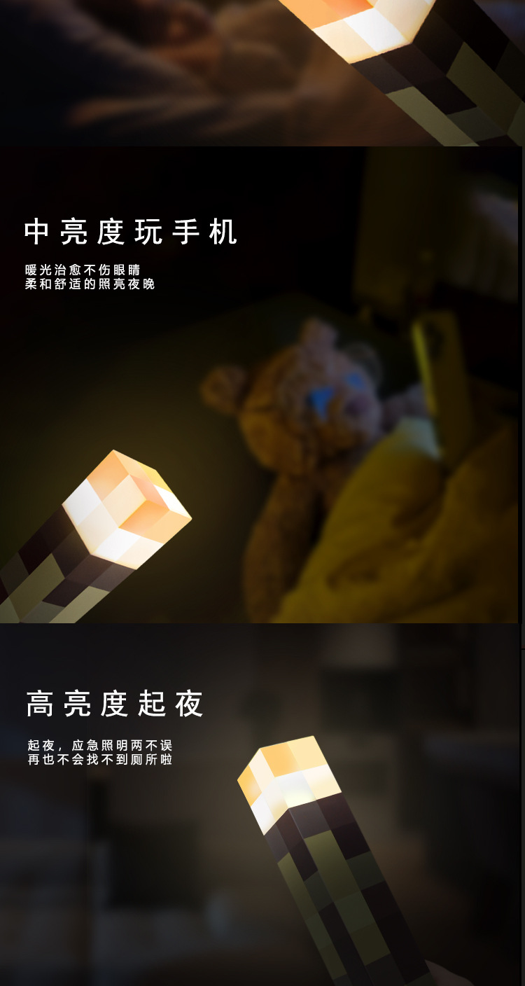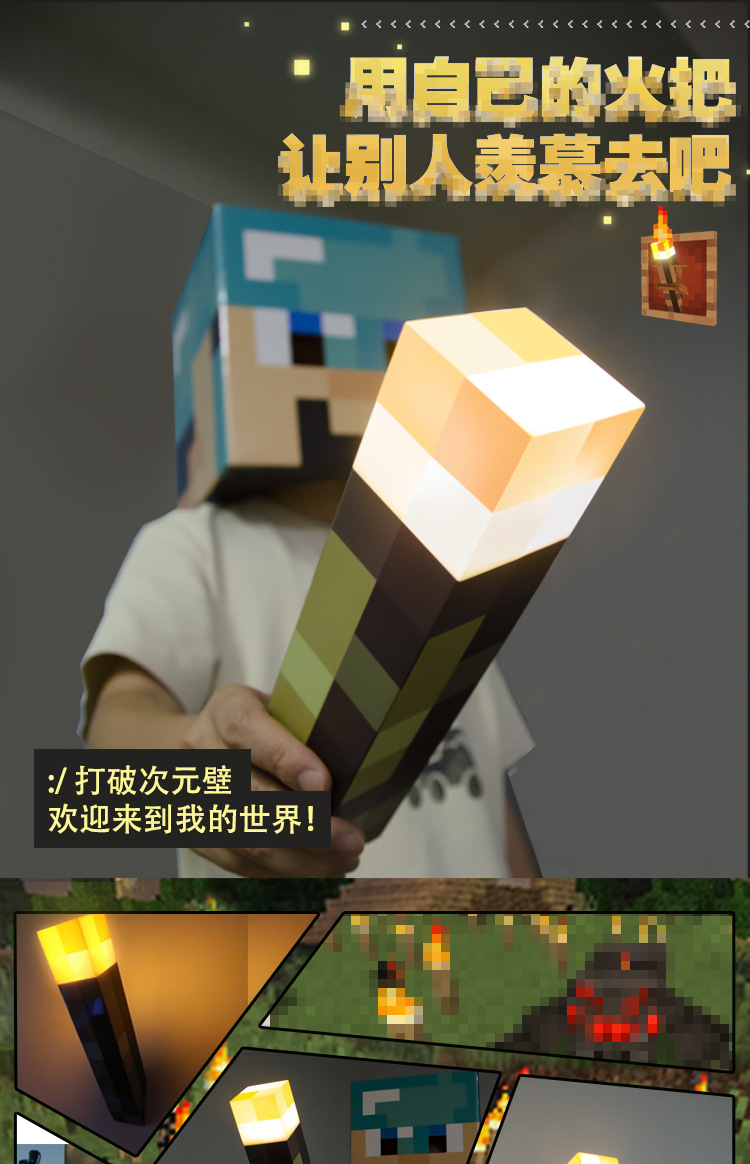 MinecreWorld Torch Night Light Juego Periférico MC Torch Light Modelo de juguete Atmósfera Decoración Luz Regalo de cumpleaños