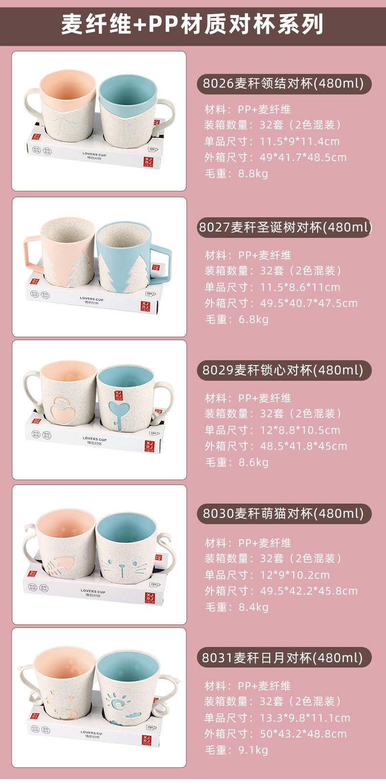 Xiaojian par taza trigo fibra plástico dibujos animados enjuague bucal taza supermercado mismo par taza cepillo de dientes taza