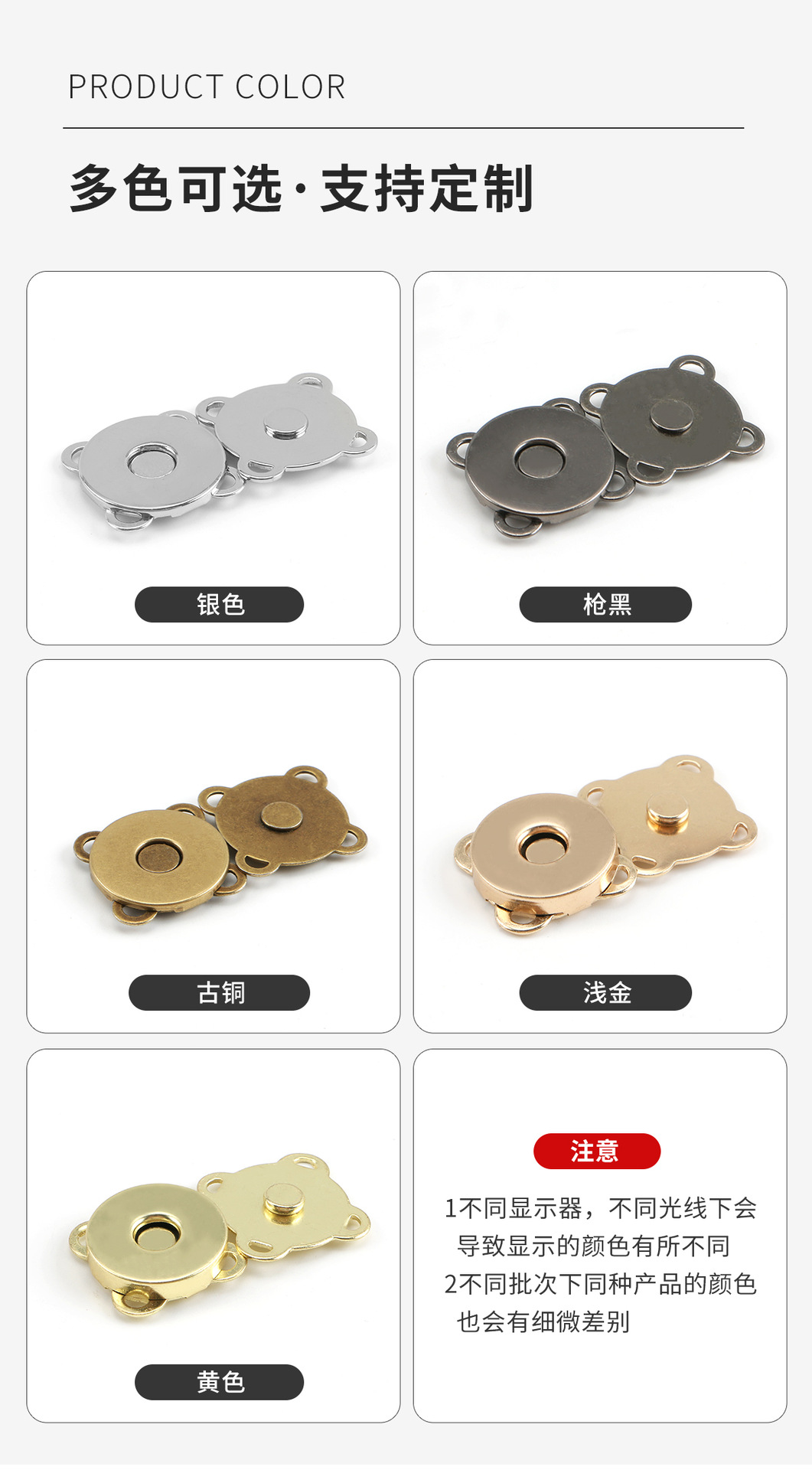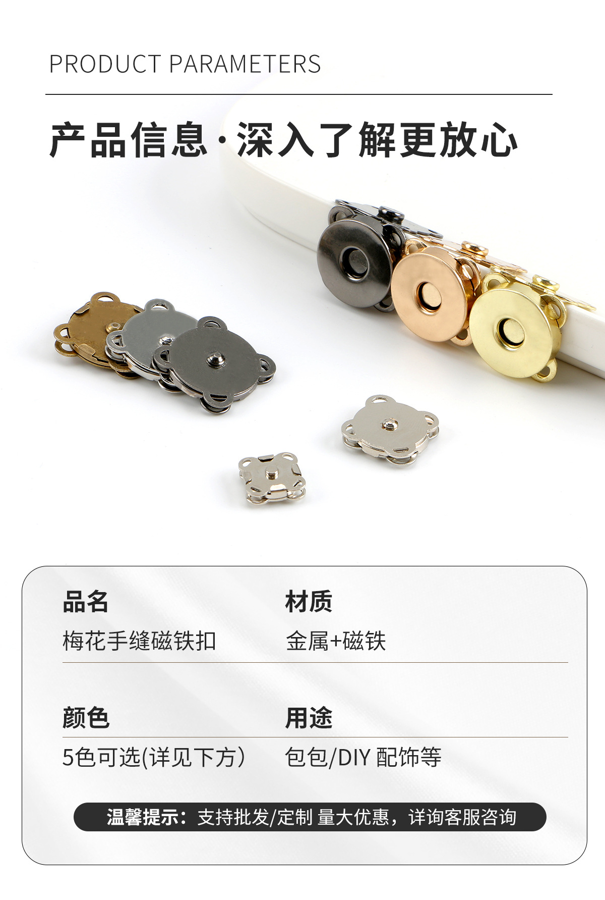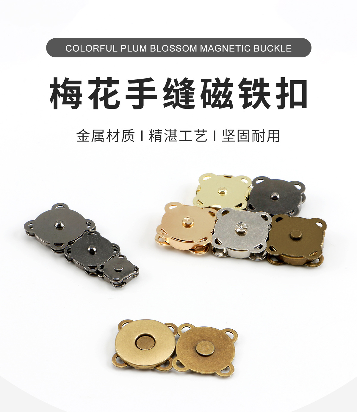 Fábrica transfronteriza de metal cosido a mano botón magnético hebilla de instalación fuerte imán magnético botón cartera mochila bolsa en forma de ciruela