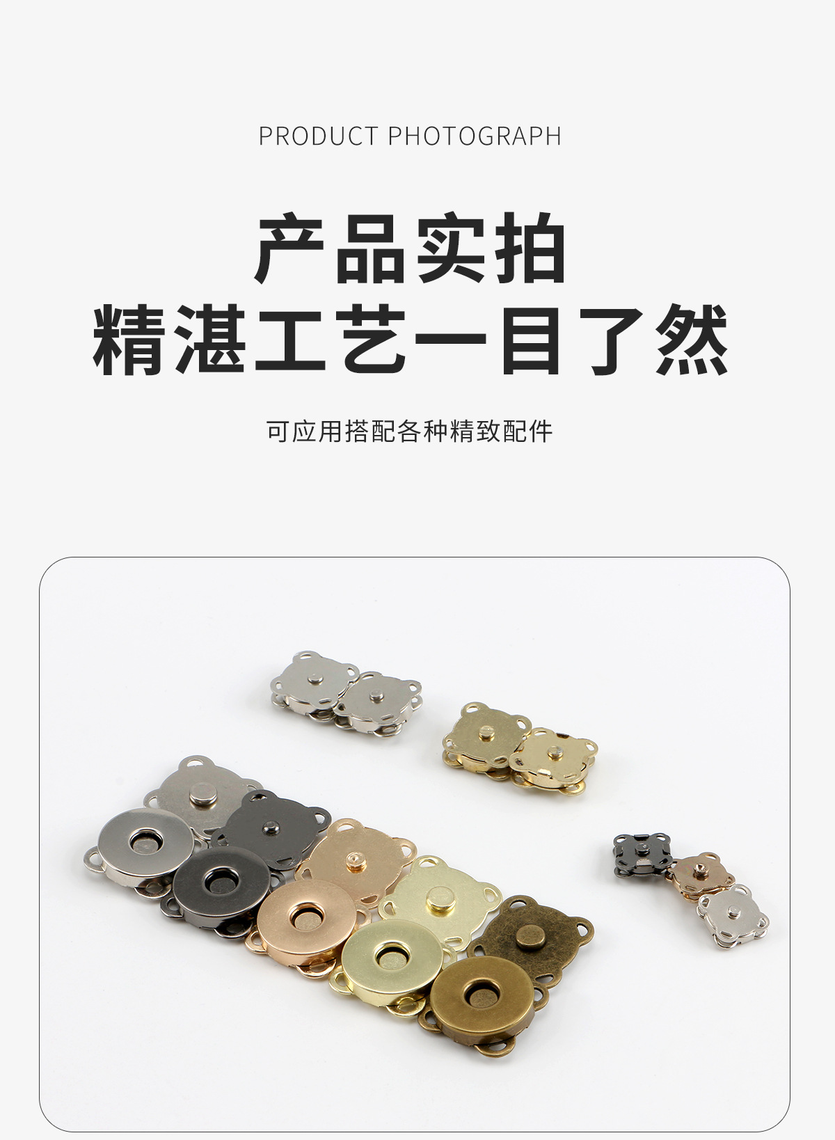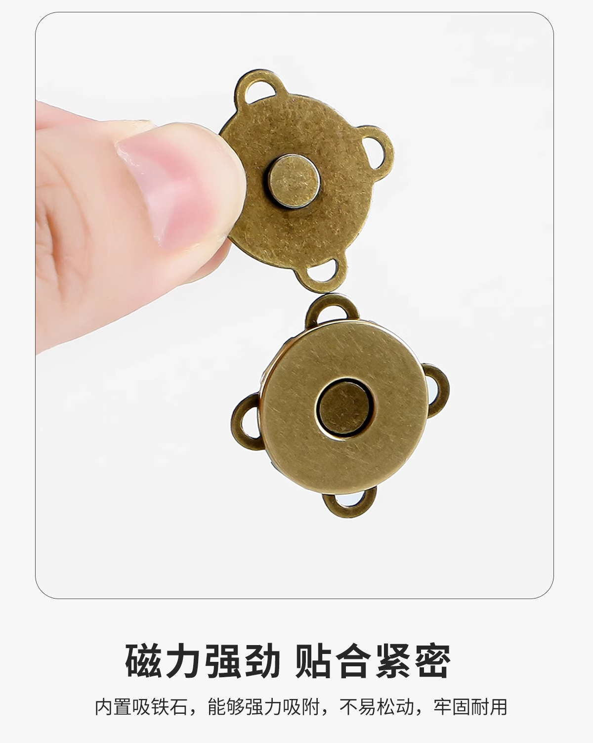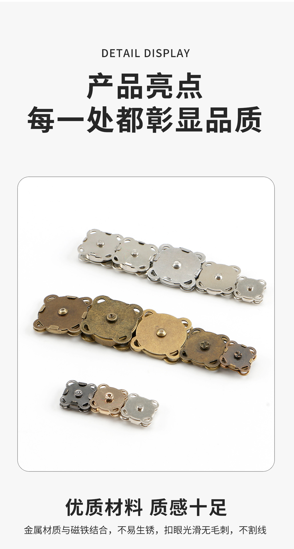 Fábrica transfronteriza de metal cosido a mano botón magnético hebilla de instalación fuerte imán magnético botón cartera mochila bolsa en forma de ciruela