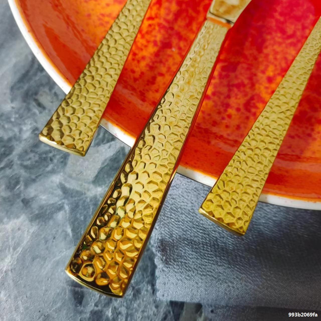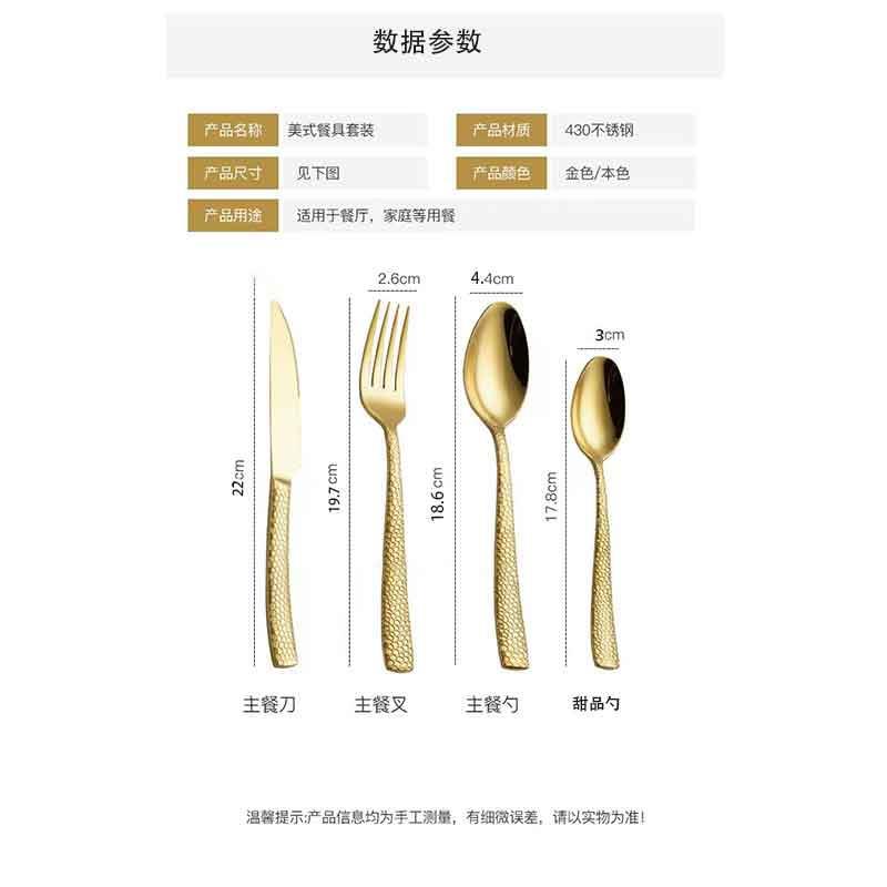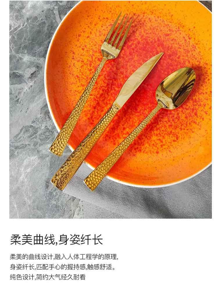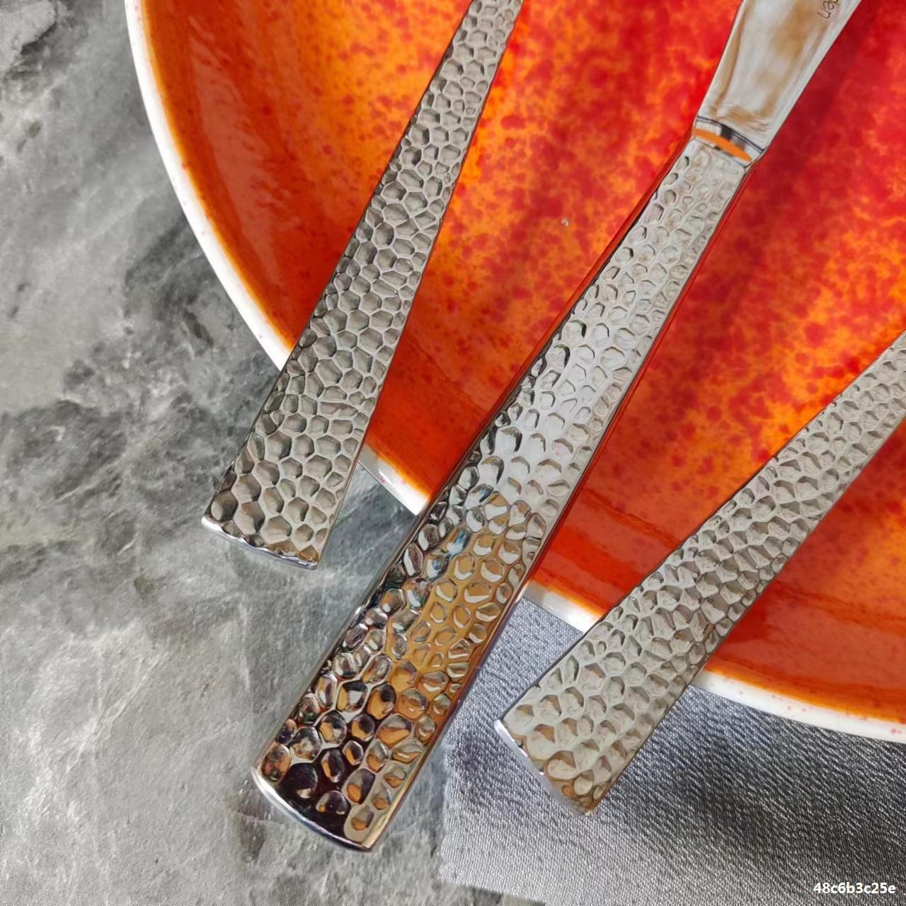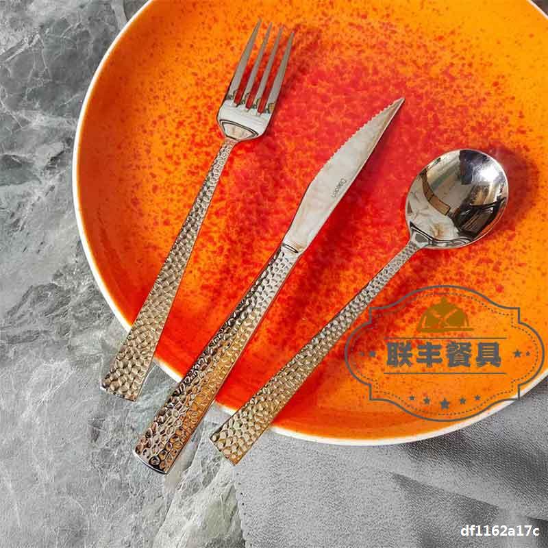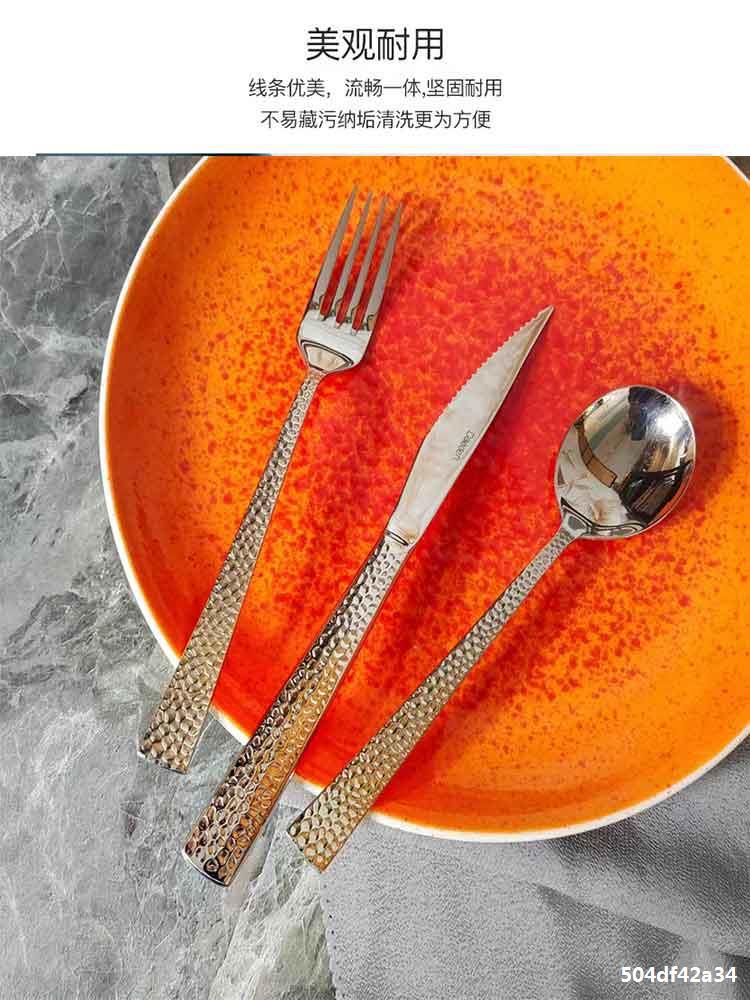 Juego de cubiertos de acero inoxidable de alta gama para bistec con estilo de martillado, cubiertos occidentales de lujo ligero, mayorista