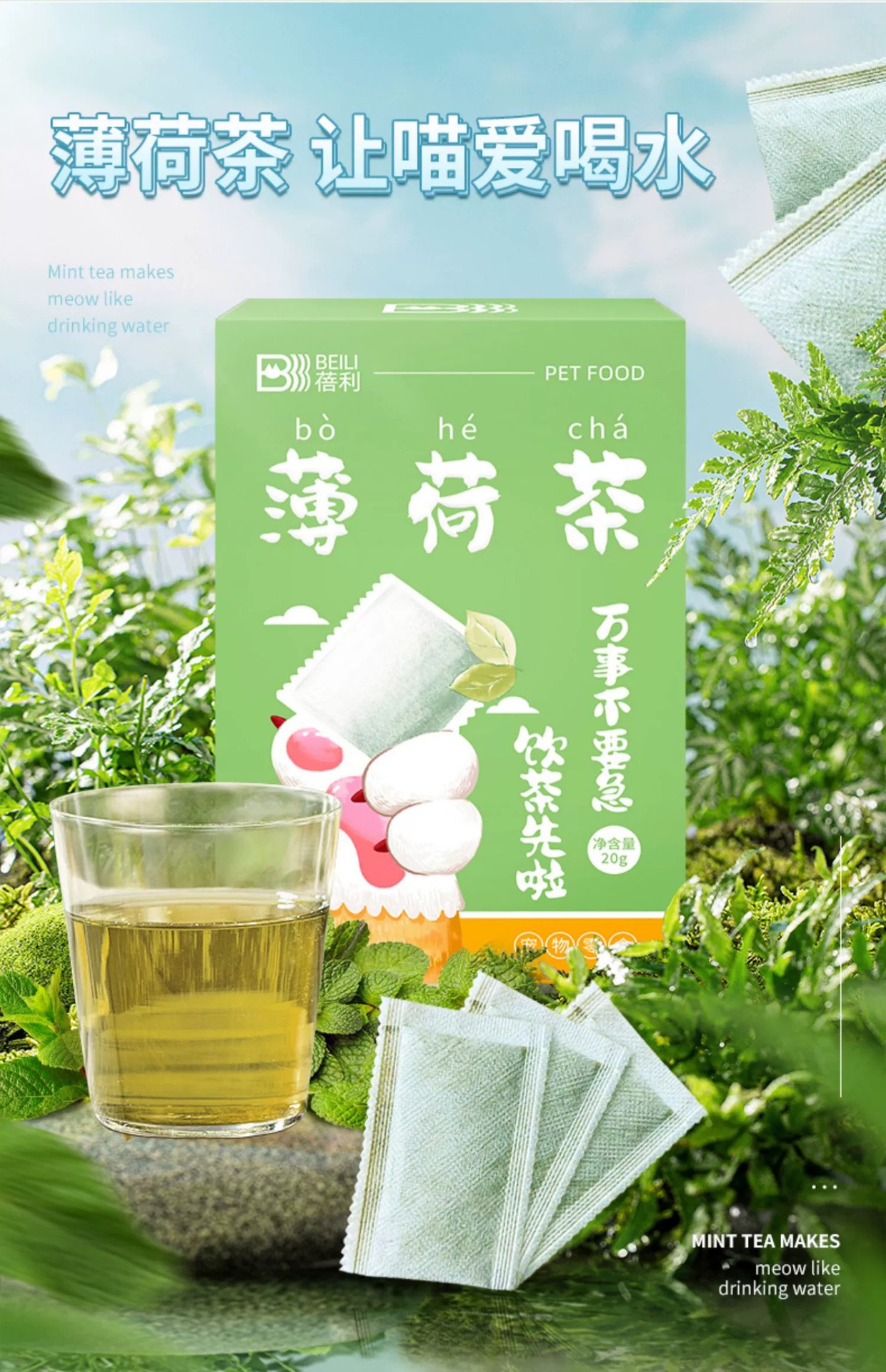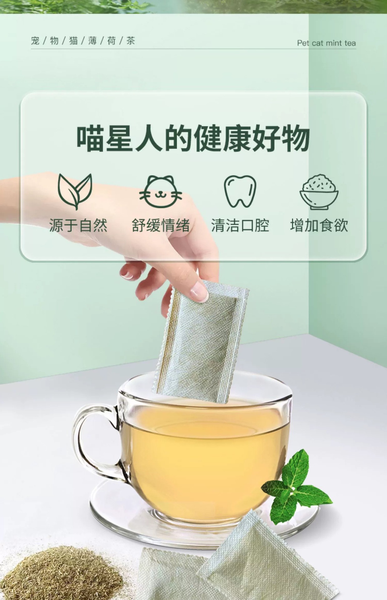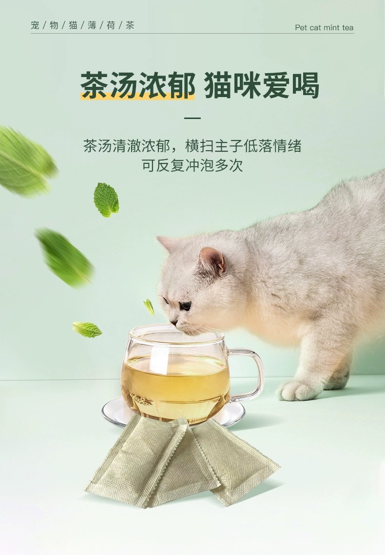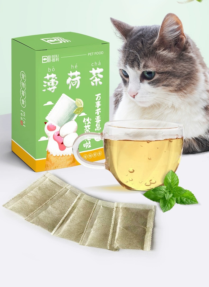 El té de menta para gatos ayuda a los gatos a beber agua, los gatos a digerir, los gatos a regular el estado de ánimo, la menta para gatos natural promueve el agua para gatos.