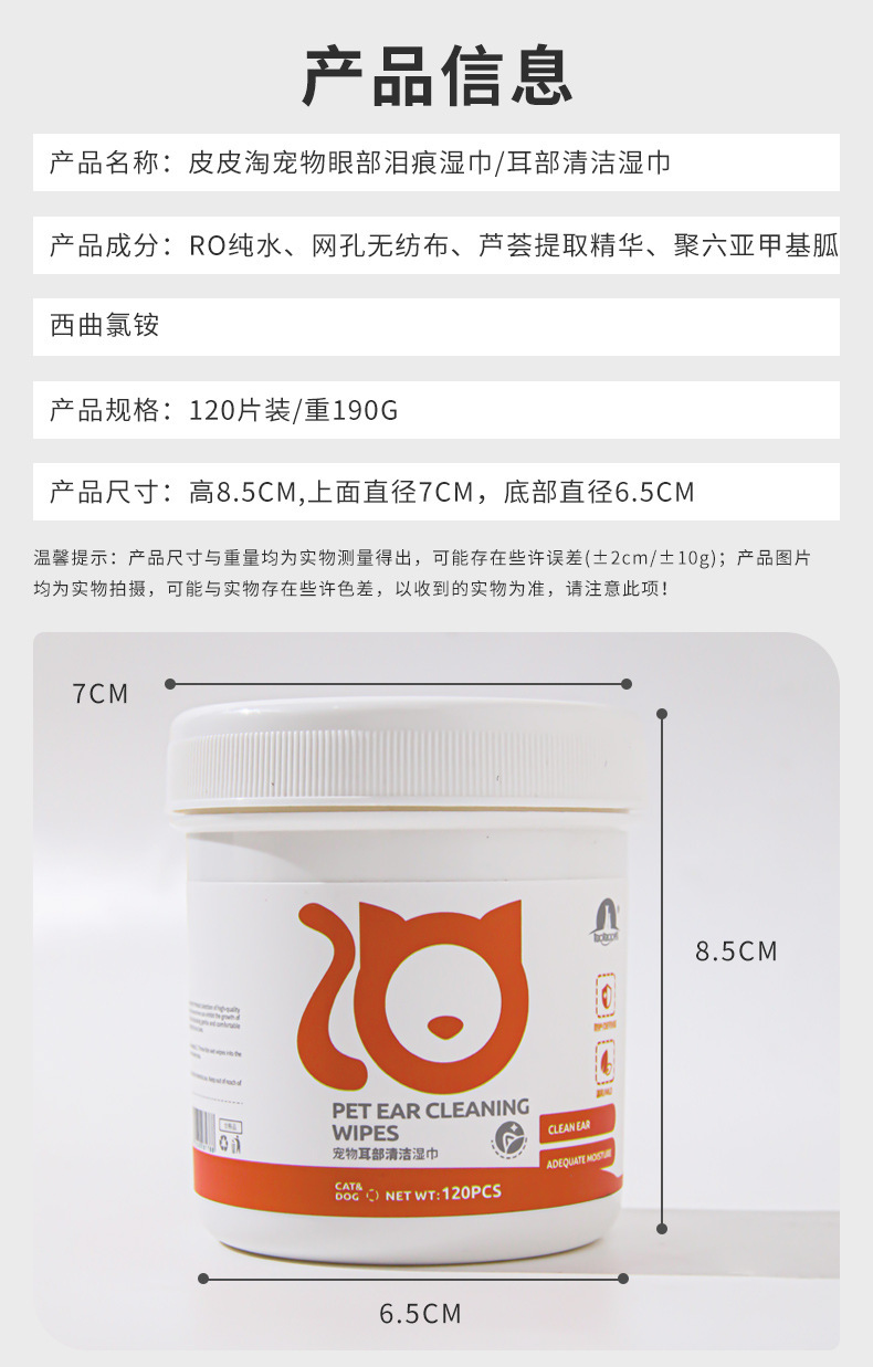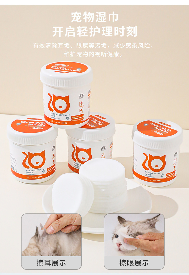 Fábrica al por mayor pipetao Ojo de mascota toallitas para el oído eliminación de lágrimas de gato toallitas perro suministros de limpieza